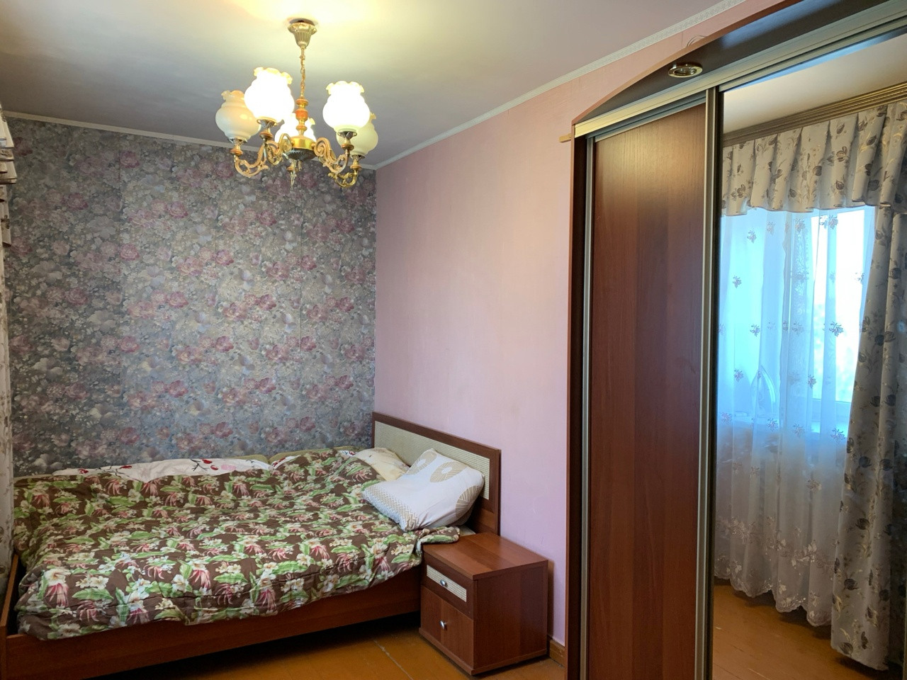 Планировка индивидуальная, две спальные комнаты, гостиная, с/узел совмещенный в кафеле, балкон застекленный ( металл ).
