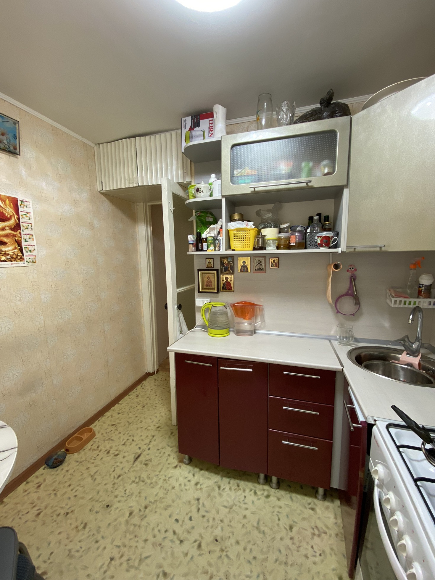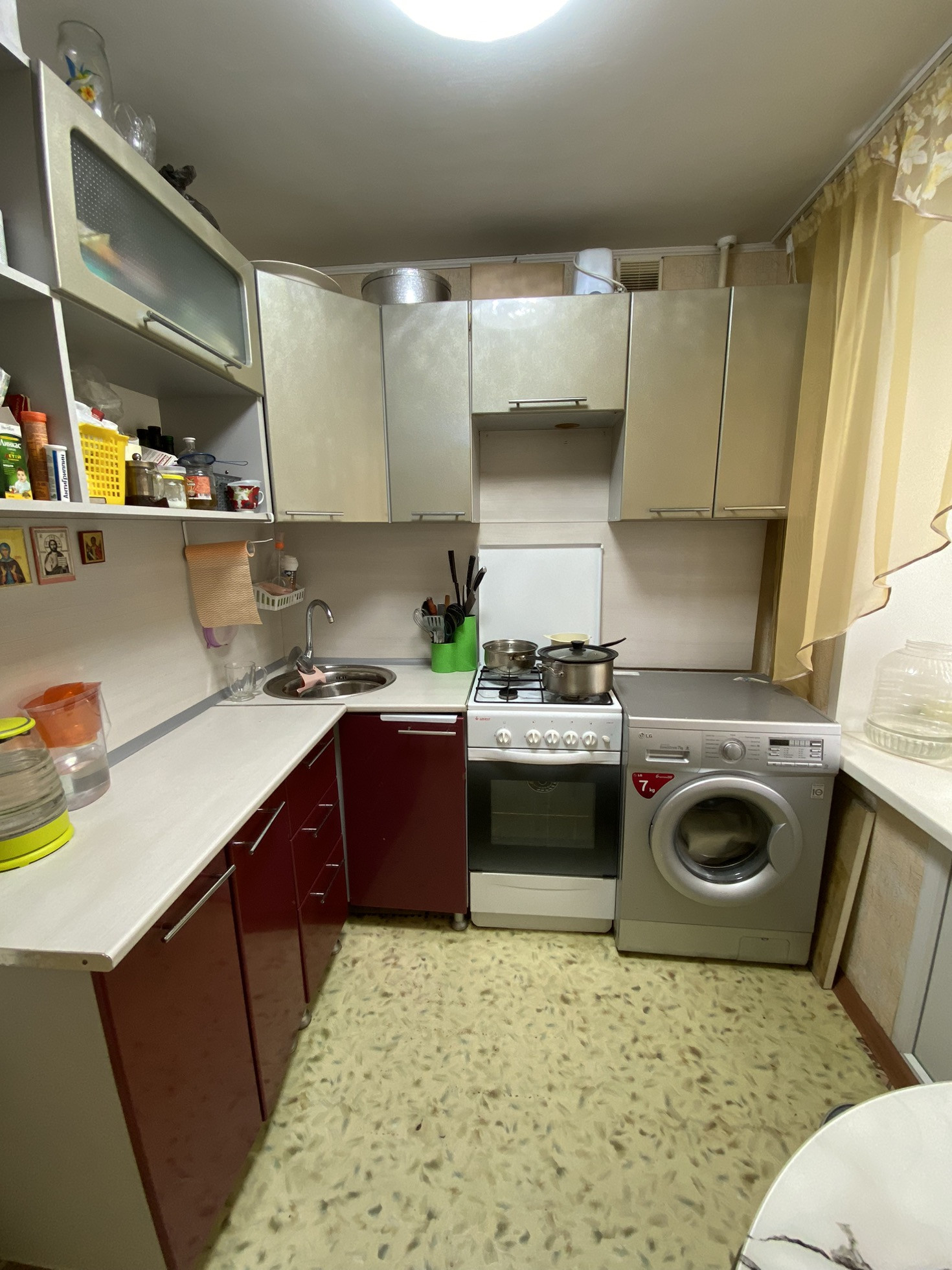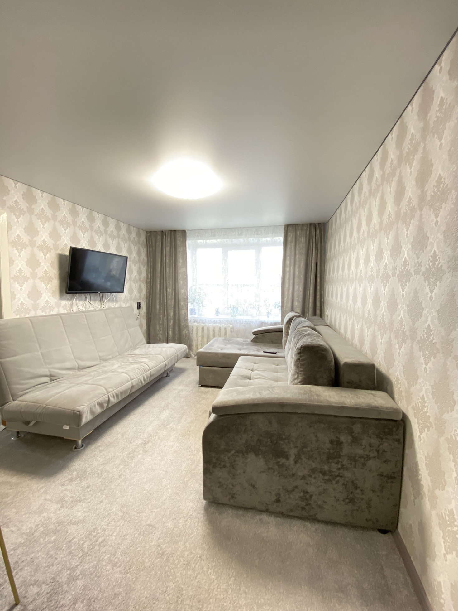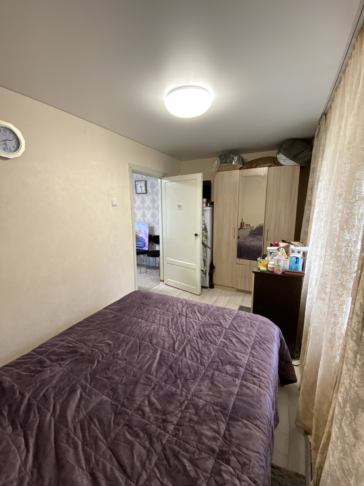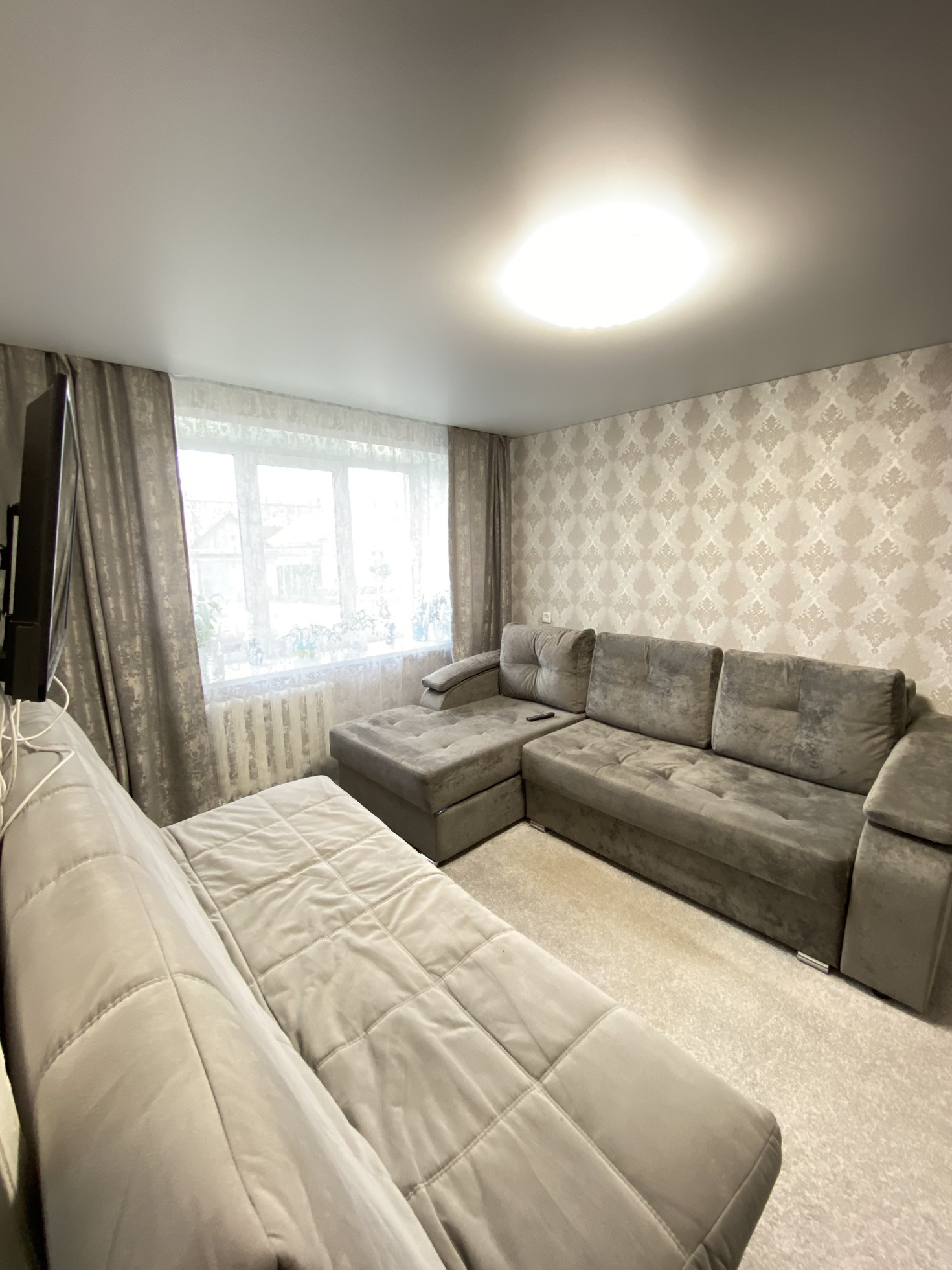Свежий косметический ремонт. Окна ПВХ, натяжные матовые потолки с точечным освещением, полы линолеум и ковролин, с/у раздельный.