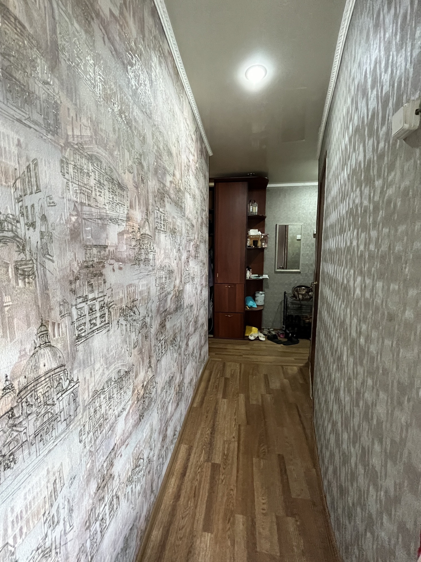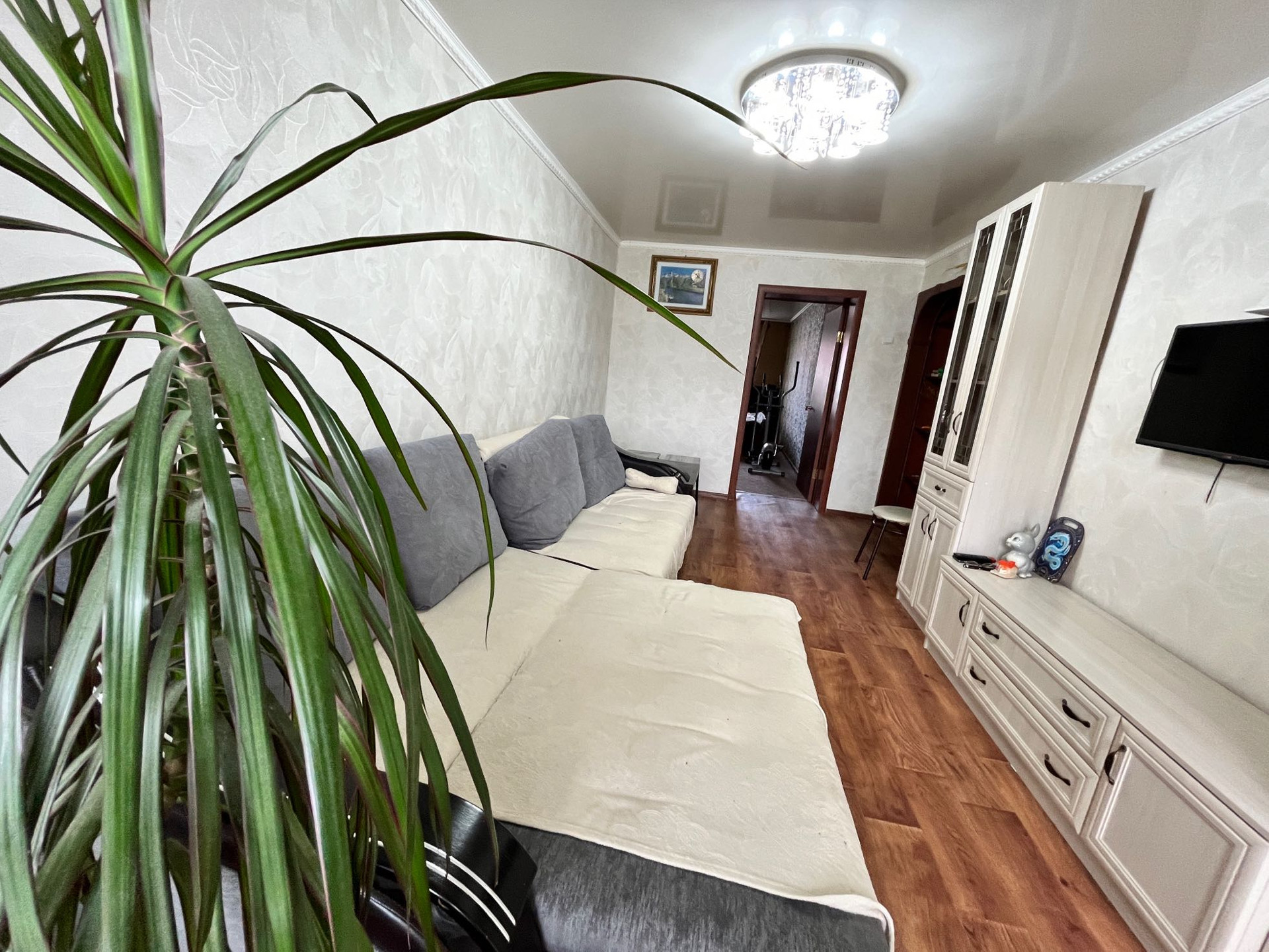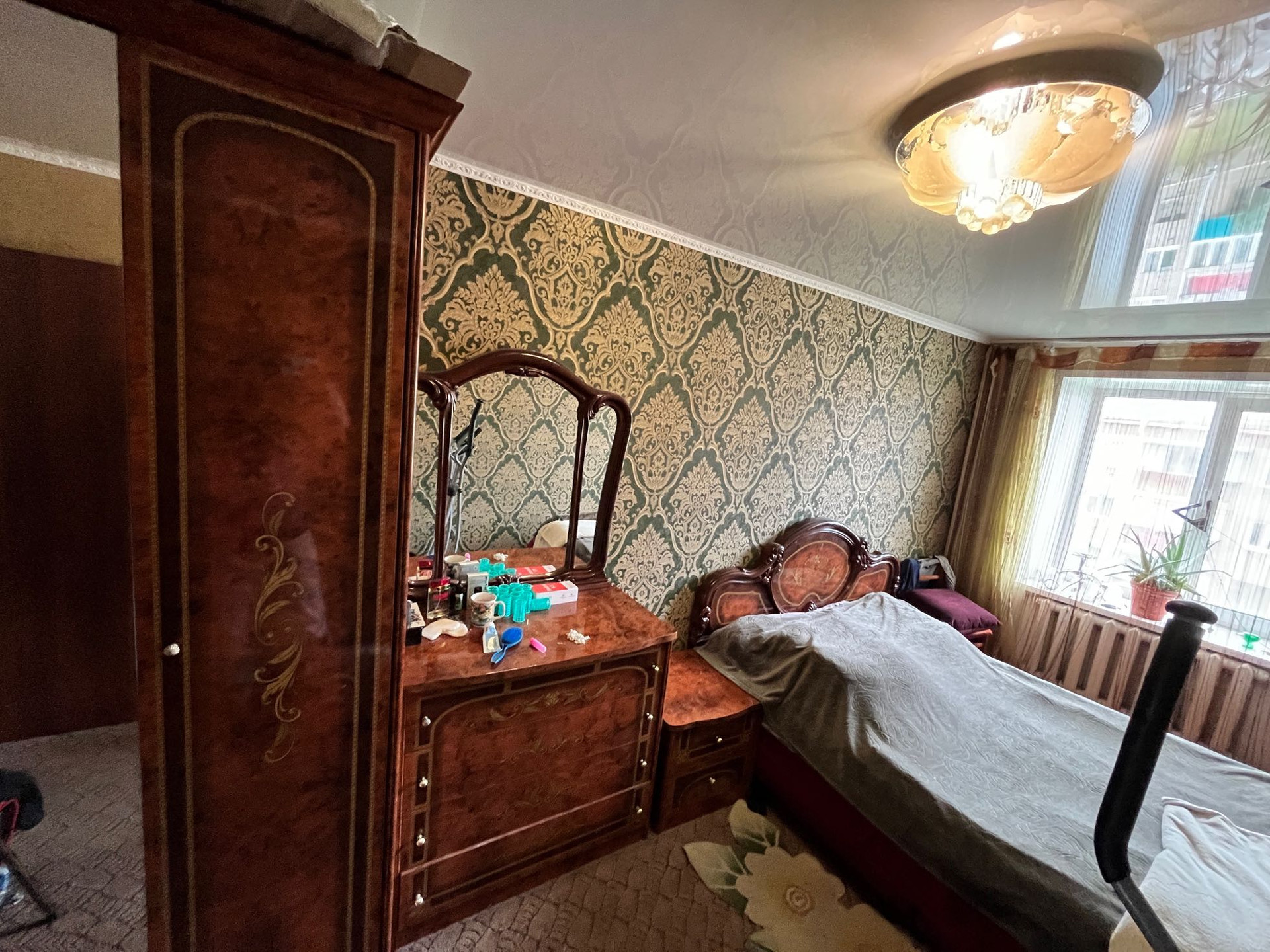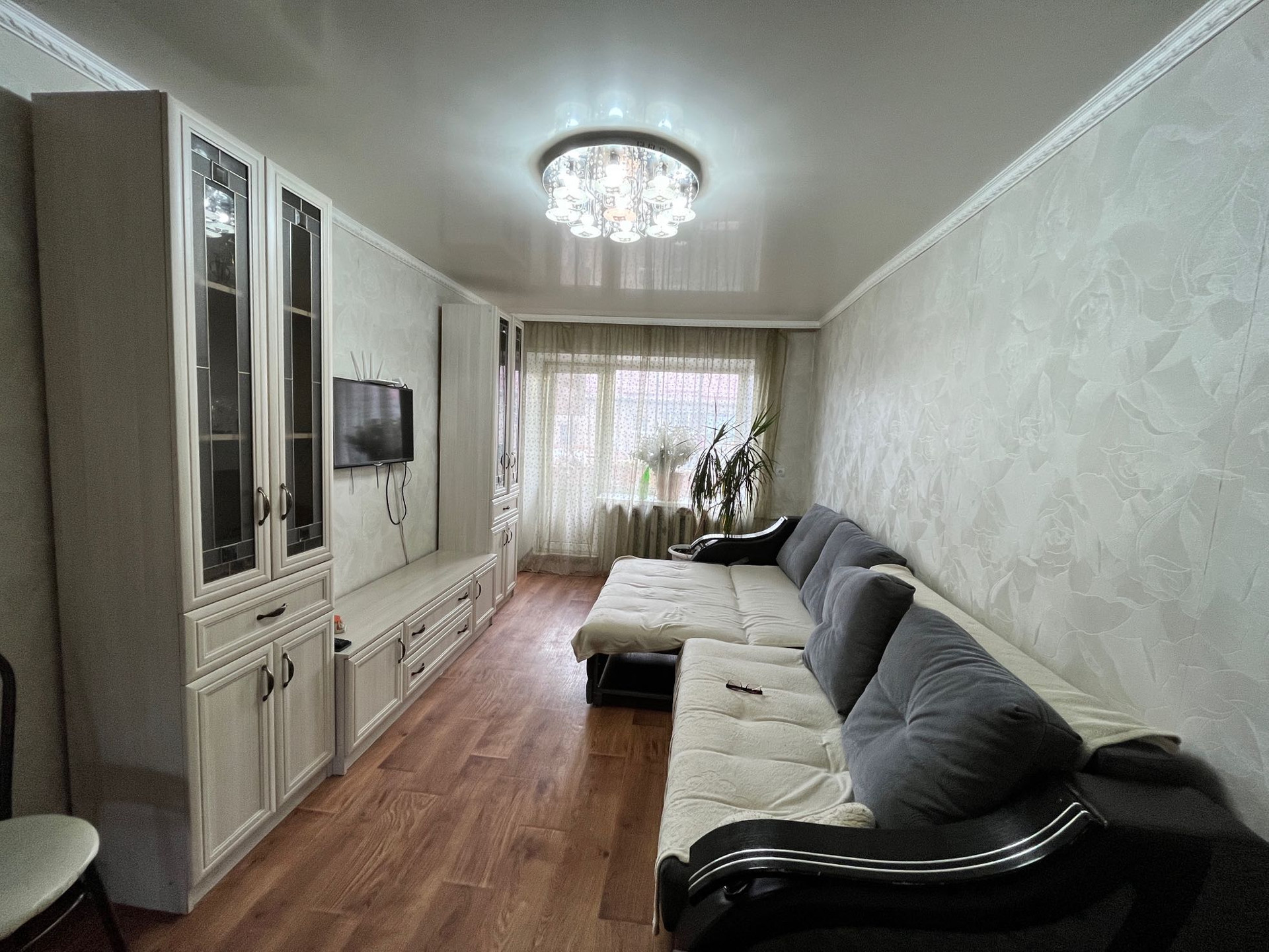 Качественный хороший, косметический ремонт, натяжные потолки, межкомнатные двери, окна пвх, на полу линолеум, стены выровнены, в ванной комнате пвх панель.