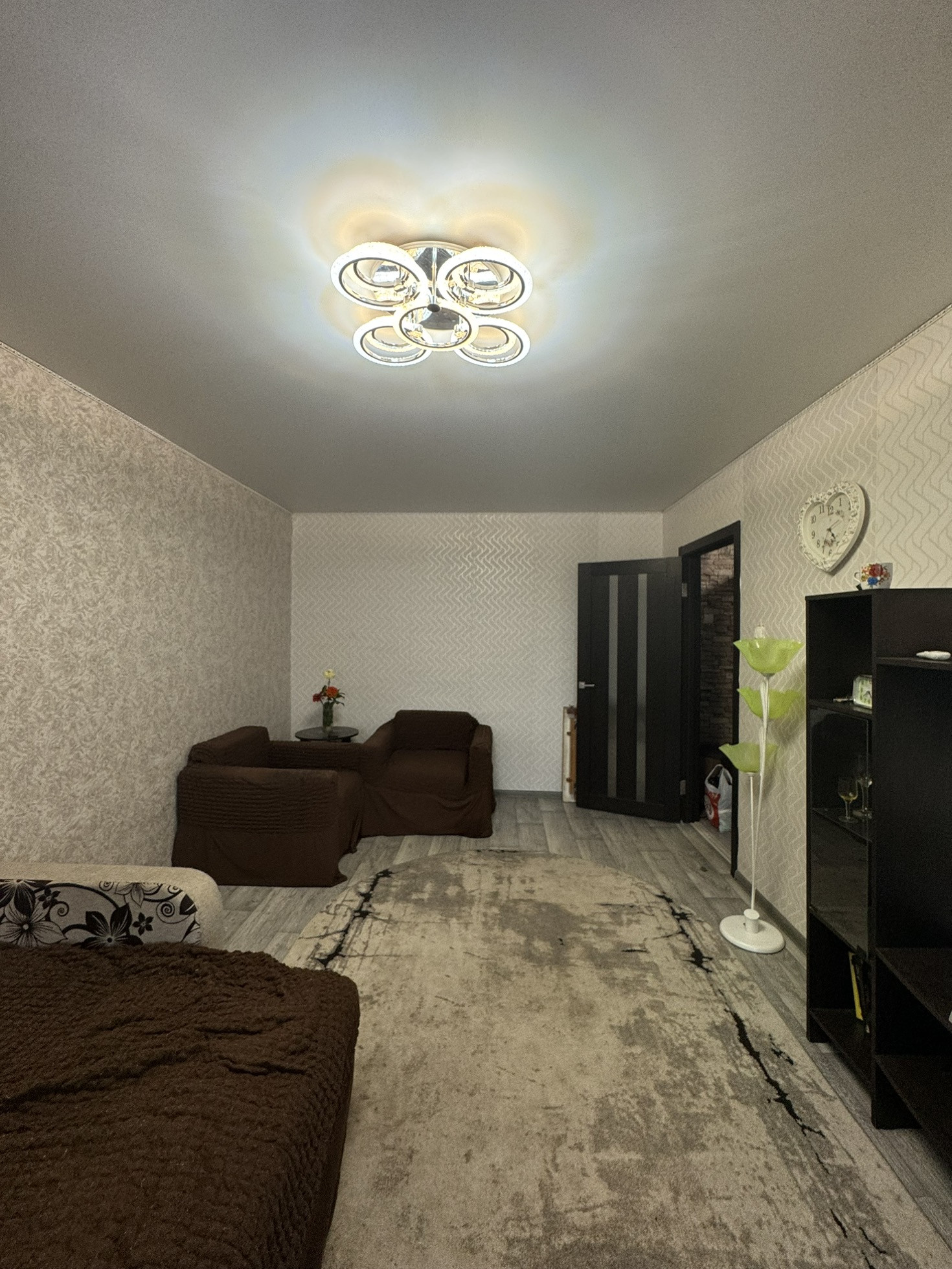 В квартире произведен косметический ремонт, натяжные потолки, постелен  линолеум и ламинат. Свежие обои, новые межкомнатные двери, заменена проводка.