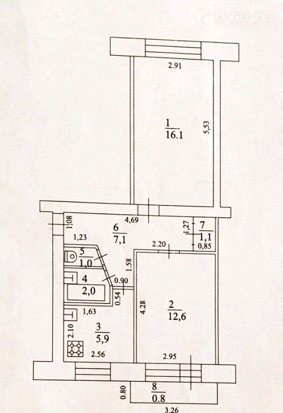Балкон, лоджия 1 балкон