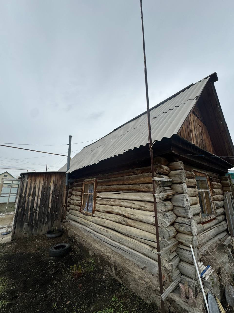 На участке стоит сруб 72 кв.м, с выходом 3 метра. Имеется крыша. Жилая времянка. Баня, сарай.
