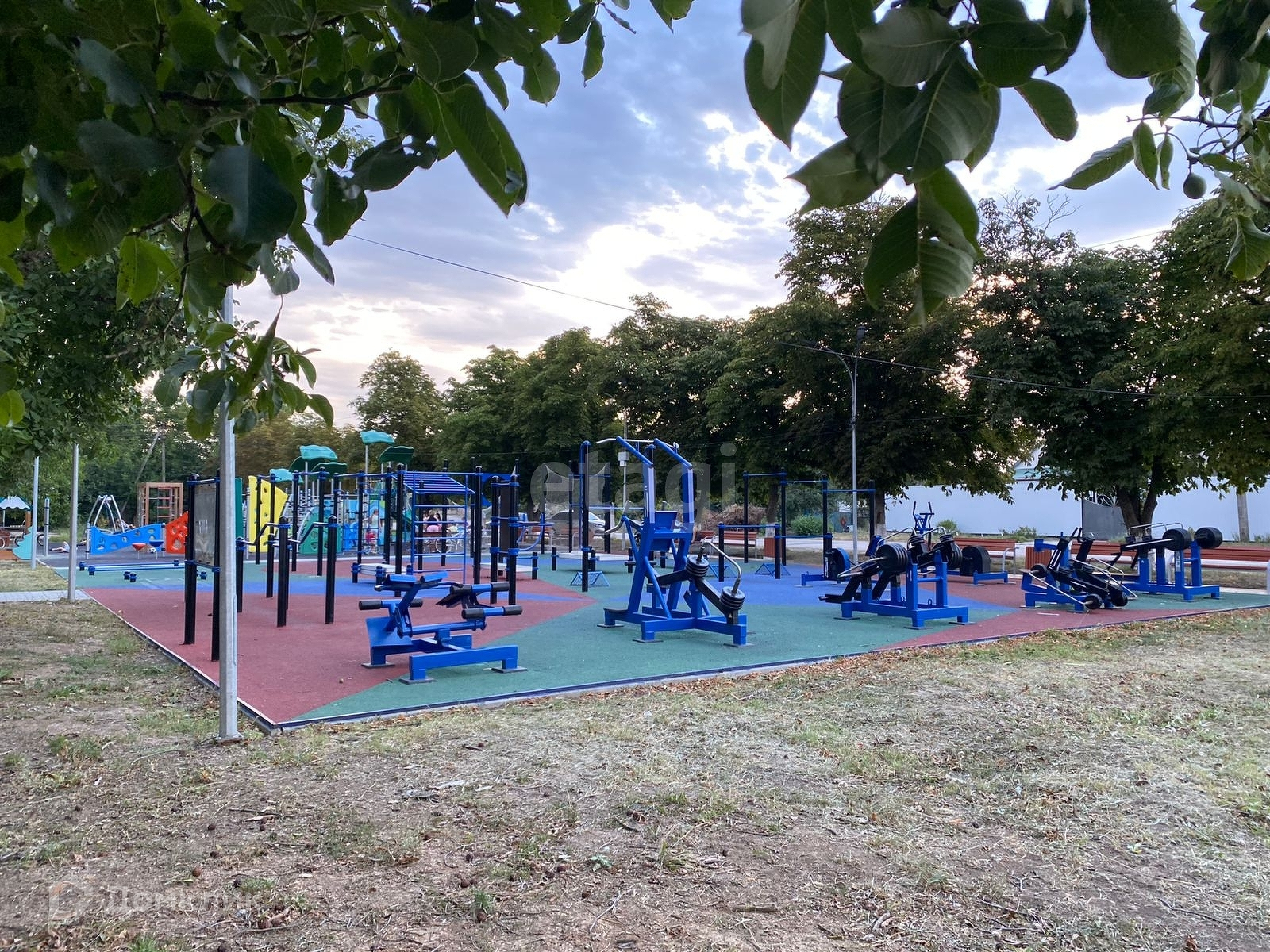 Через дорогу новая детская спортивная площадка.