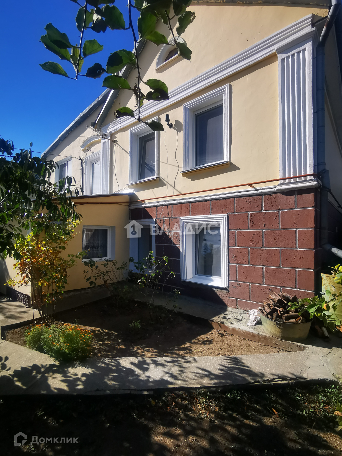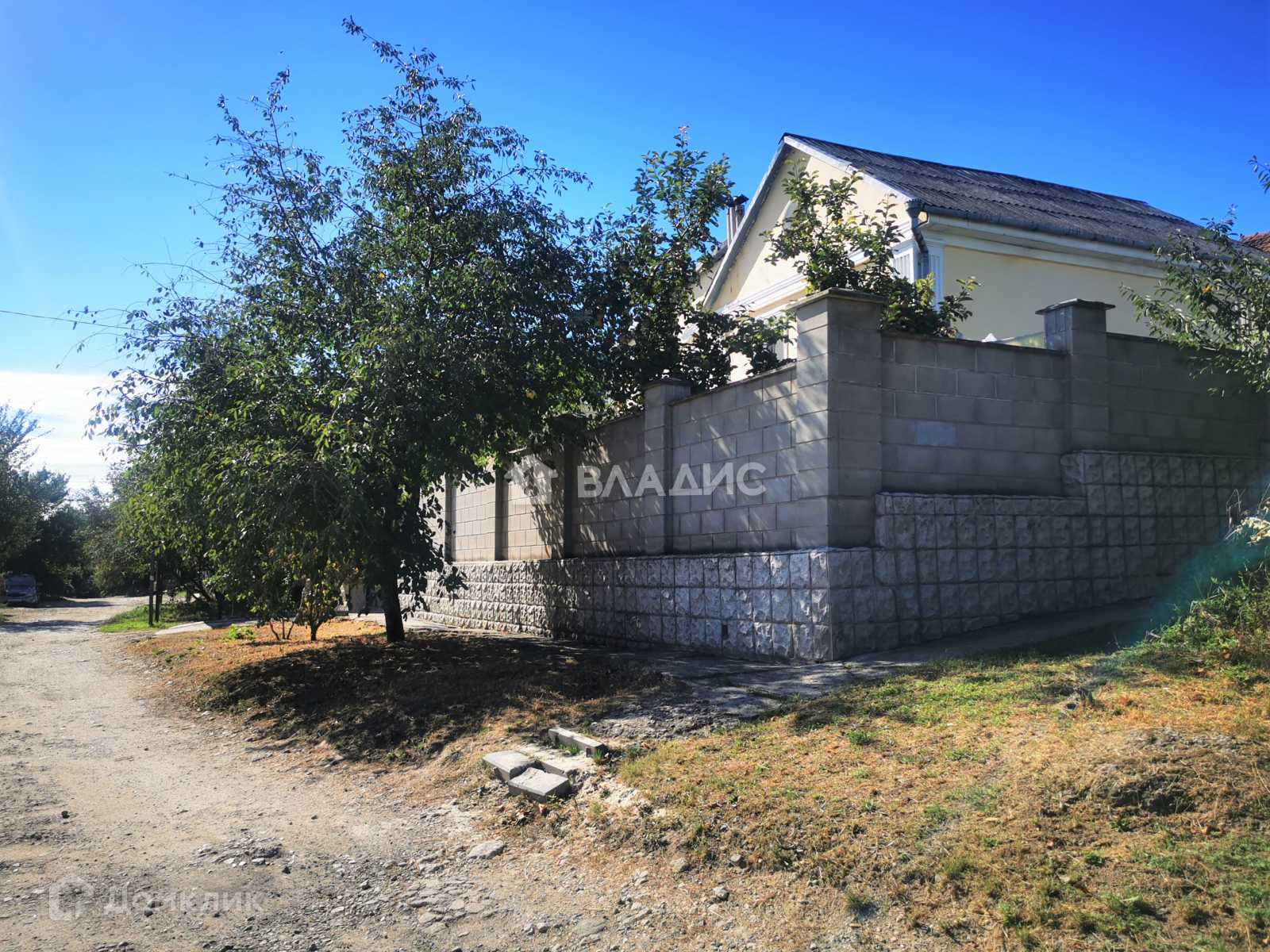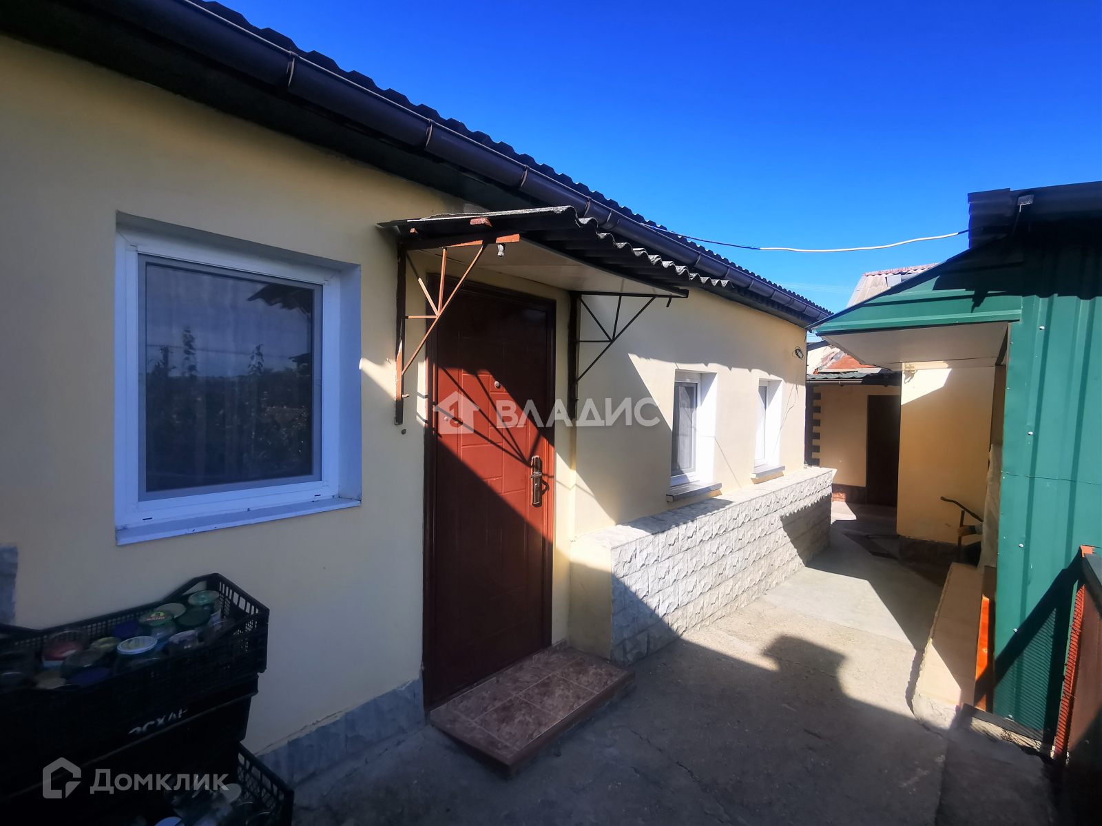 Дом построен из ракушки с наружным утеплением под штукатурку. Окна пластиковые. Забор кирпичный.