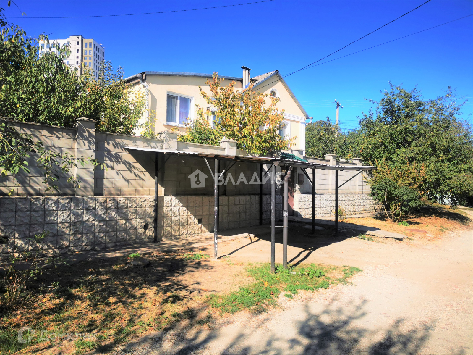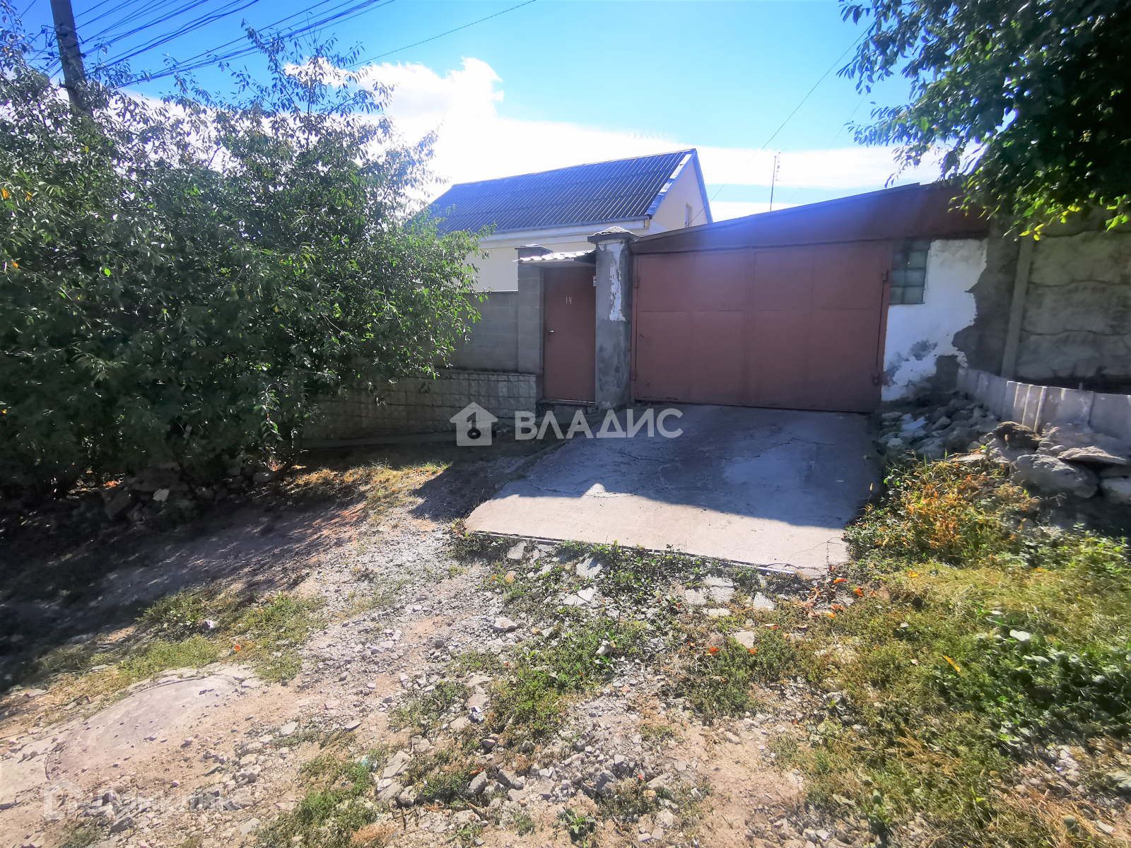 Двор полностью благоустроен – есть небольшой сад с плодоносящими деревьями, бетонированными дорожками и гаражом на одно машиноместо. Также перед домом имеется навес для автомобиля. Двор имеет два независимых входа.