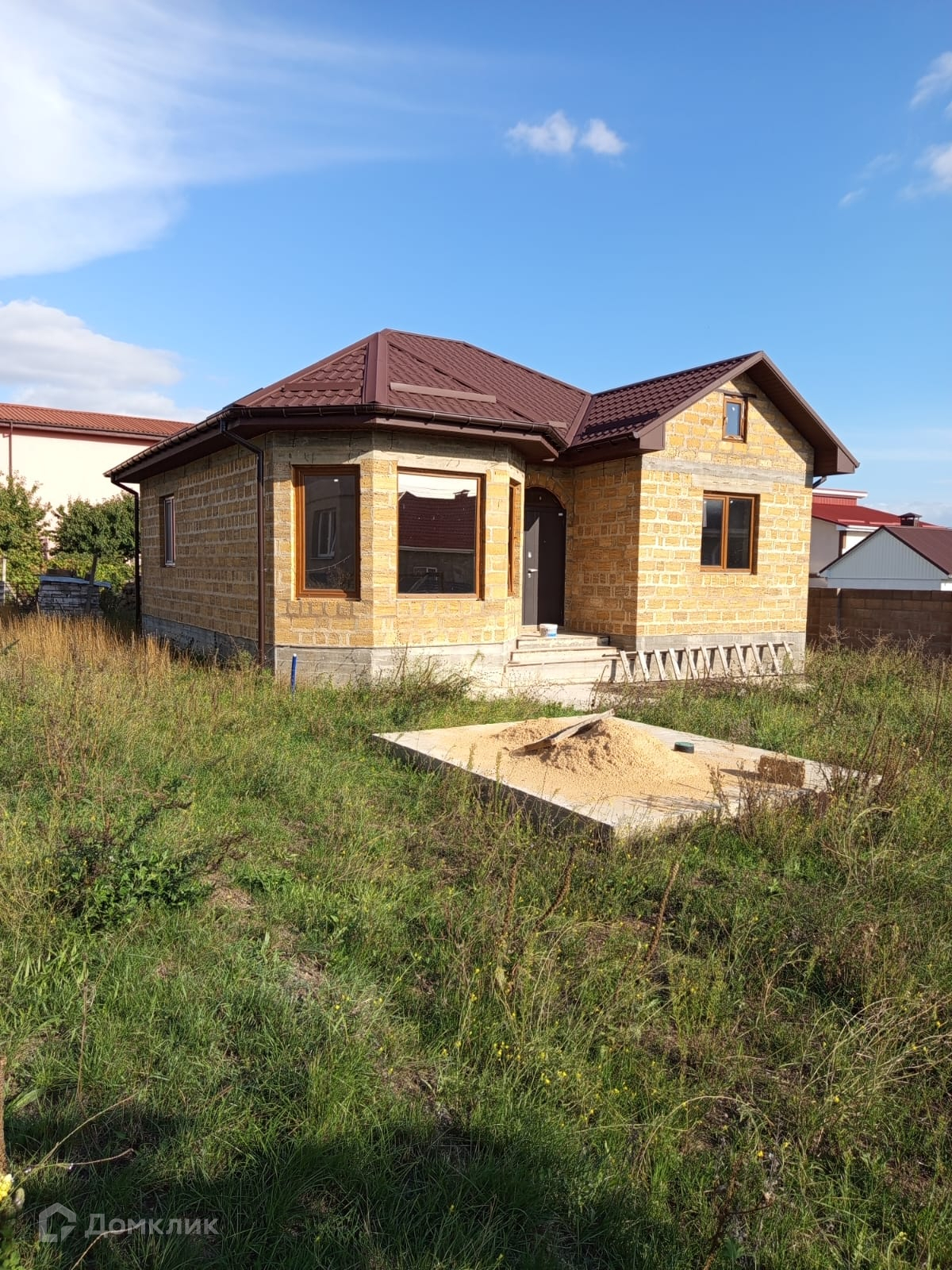 Общая площадь дома составляет 95 кв.м, в нем предусмотрено три изолированные комнаты (14,2 м², 14,5 м² и 14,4 м²), а также уютная кухня-столовая площадью 15 м², ресепшен в виде просторного длинного коридора и совмещенный санузел. Фундамент выполнен из качественного бетона, стены – из кирпича, крыша покрыта металлочерепицей, что обеспечивает долговечность и надежность конструкции. Коммуникации (электричество 380 В, локальная канализация и водоснабжение ) уже заведены в дом, а наличие газа делает жилье еще более комфортным.