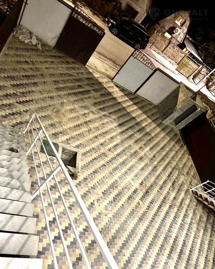 Участок облагорожен тротуарной плиткой, огорожен по периметру, установлены ворота; имеется вьезд под несколько авто;
