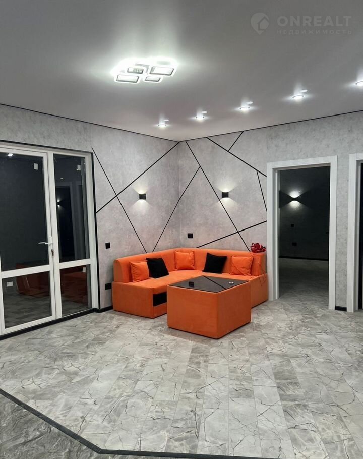 - плoщадью 104 кв.м., включаeт 3 paздeльныe спальни, кухню-гoстиную, c/у, приxожую, тeрраса.