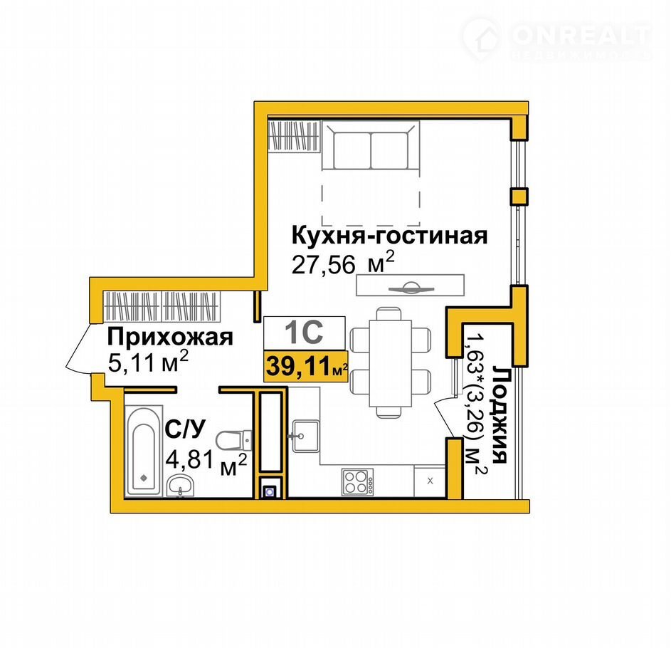 Балкон, лоджия 1 лоджия