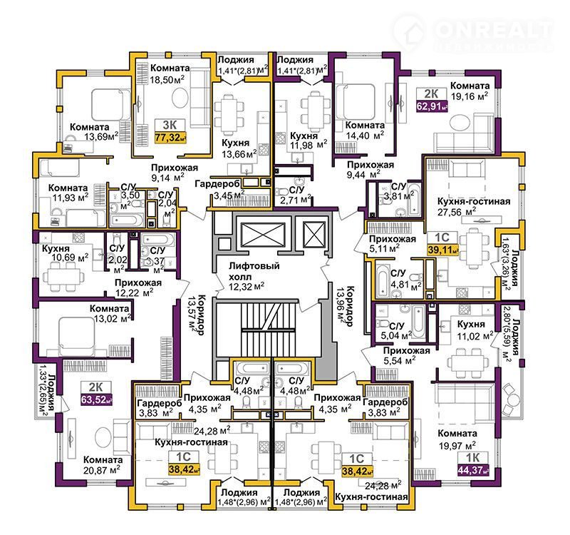 Общая площадь 39.1 м2
