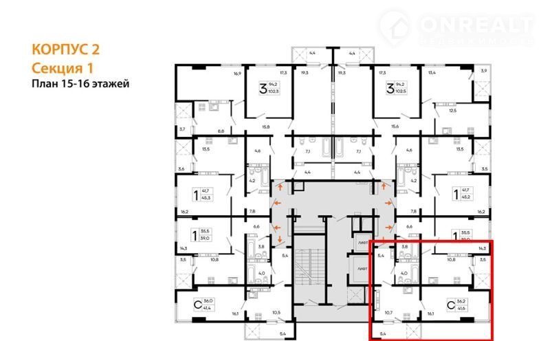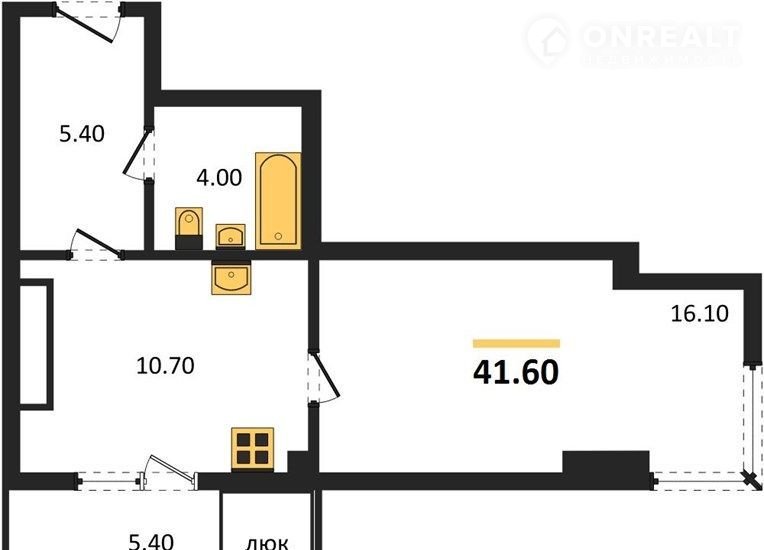 Общая площадь 41.6 м2