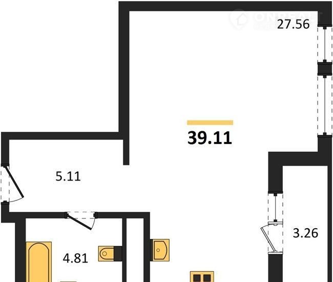 Общая площадь 39.1 м2