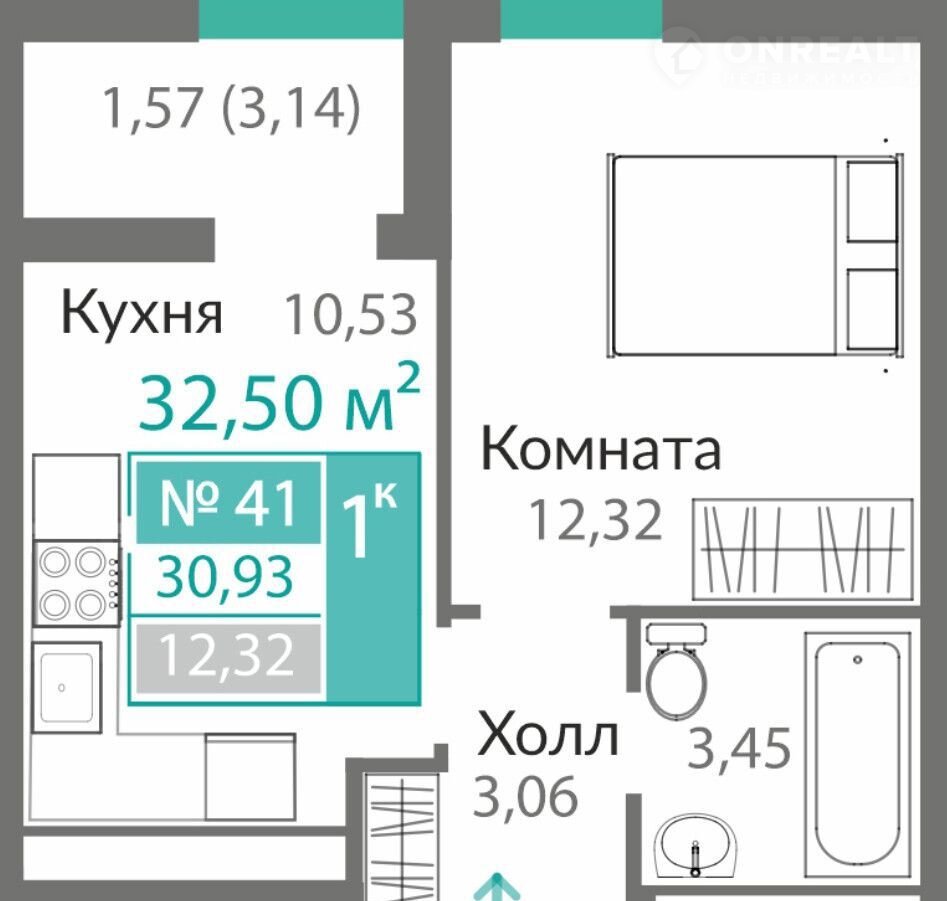 Пapaметры: Kомнaт: 1, Этаж 5, Общая площaдь 30.93 кв. м, Жилая плoщадь 12.32 кв. м,