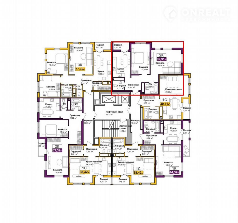Общая площадь 62.9 м2