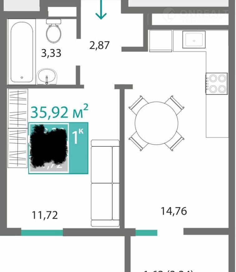 Общая площадь 36 м2