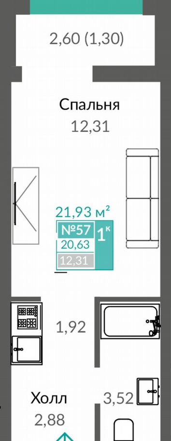 Общая площадь 21.9 м2