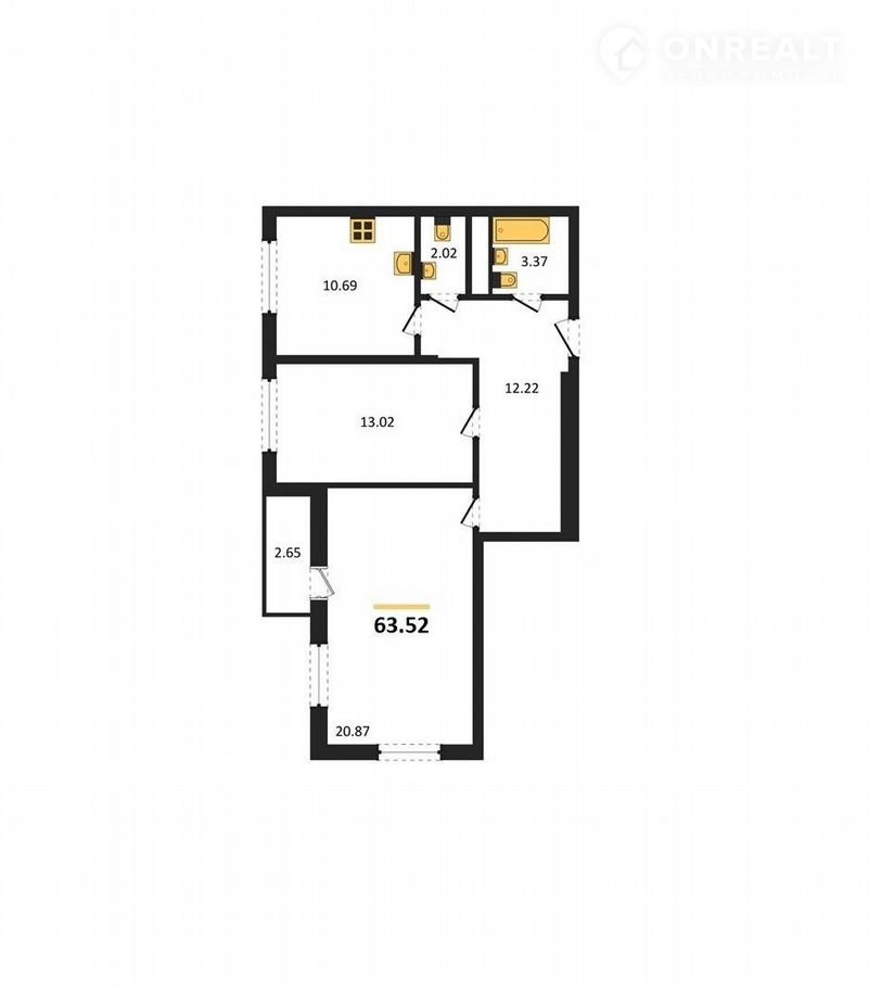 Общая площадь 63.5 м2