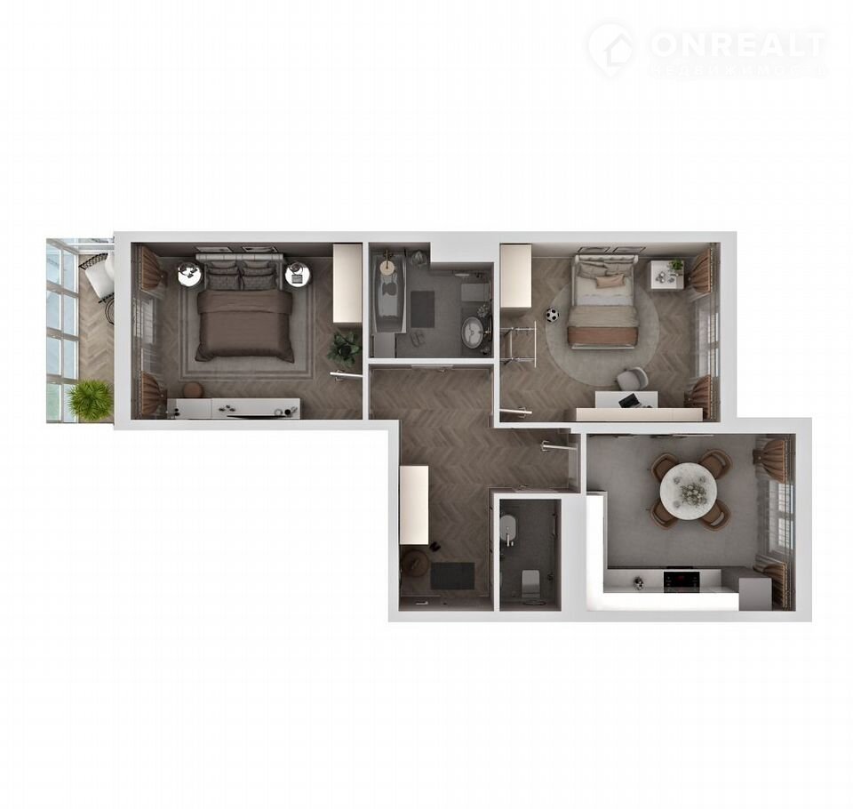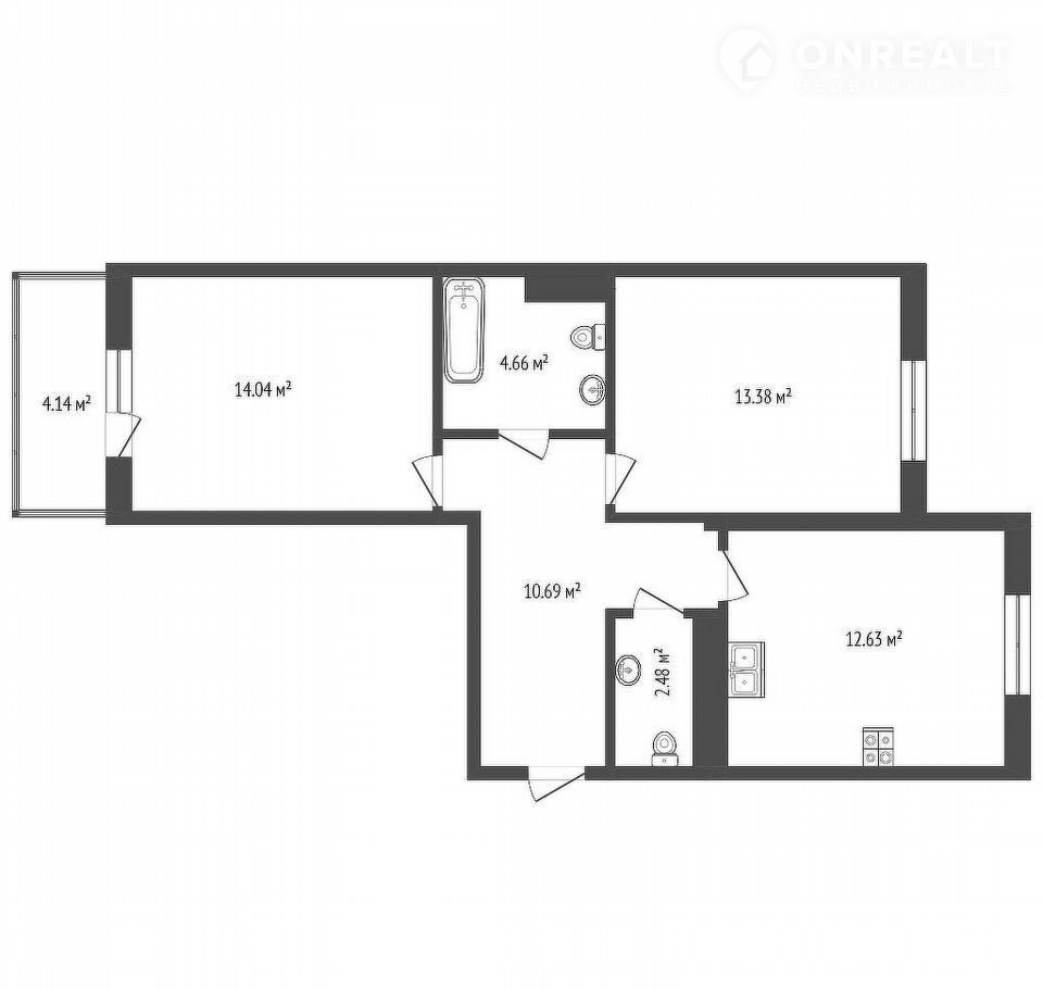 Просторные 59.95 м², светлые комнаты 13,38 м² и 14,04 м² и большая кухня 12,63 м² – здесь есть все для жизни с удовольствием. Два санузла 4,66 м² и 2,48 м² добавят удобства вам и вашим гостям.