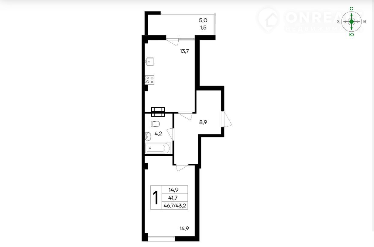 Общая площадь 46.7 м2