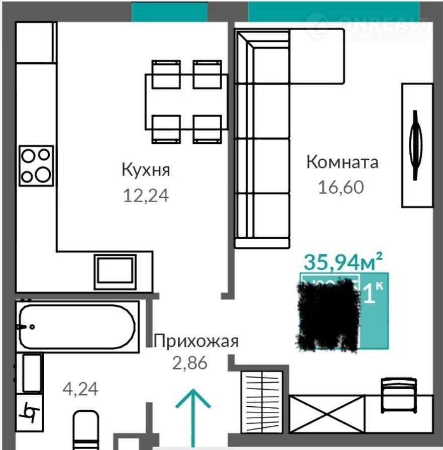 Общая площадь 36 м2