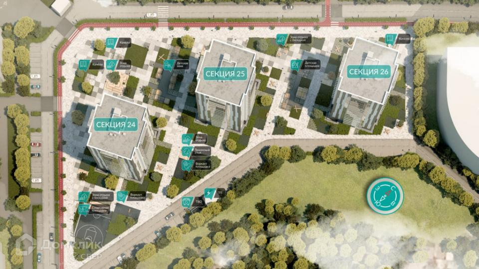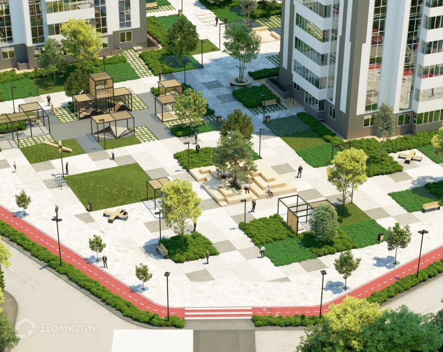 Территория данного комплекса – это уютное и функциональное пространство.  Двор свободен от машин, а доступ автотранспорта обеспечен лишь с внешней стороны комплекса. Здесь же расположен паркинг на 51 место, включая места для людей с ограниченными возможностями. Для проезда спецтехники предусмотрены расширенные тротуары. В шаговой доступности предусмотрено строительство парковки на 2500 машино мест.
