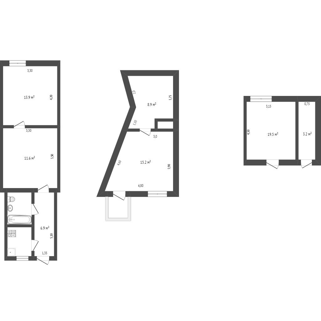 Помещения под капитальный ремонт, но это недвижимость в центре города, фактически 3 отдельных квартиры, которые можно очень выгодно сдавать или продать после ремонта. Все коммуникации центральные.