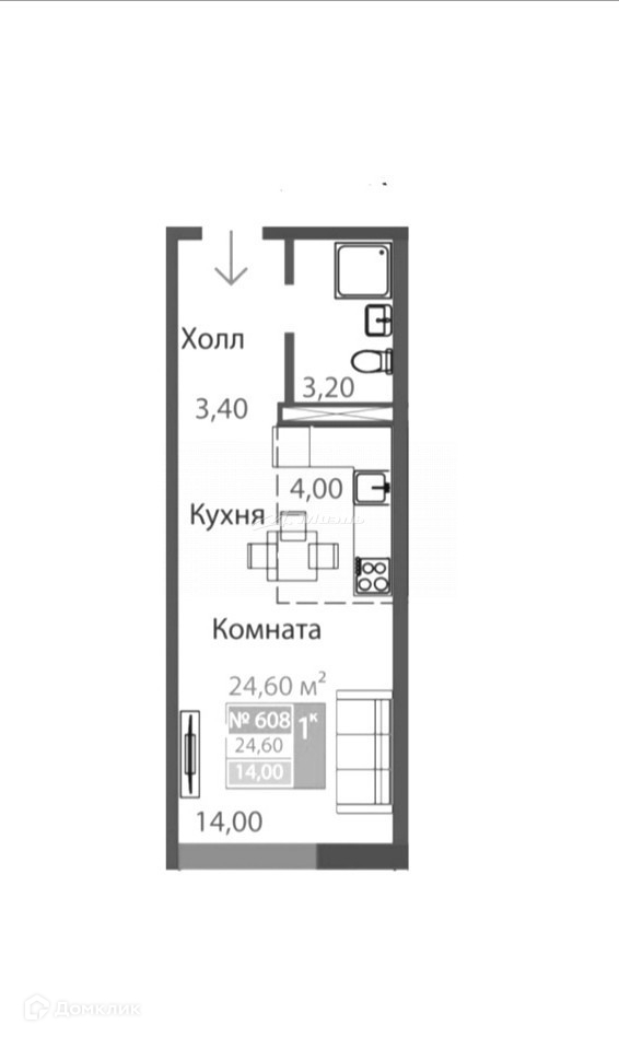 Общая площадь 24,6 кв. м.