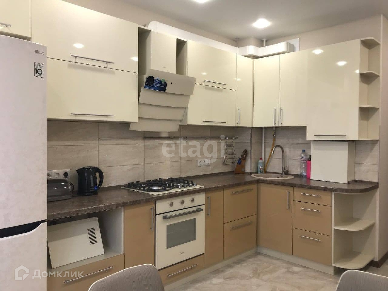 Квартира светлая, уютная, красивая, полностью обставлена хорошей, новой мебелью и необходимой техникой. Кондиционеры, телевизоры, стиральная машинка, на кухне холодильник LG, варочная поверхность, духовка, вытяжка.