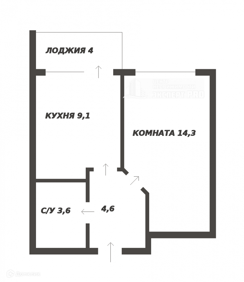 Площадь квартиры с учётом остеклённой лоджии 35,6 м2. Комната 14,3 м2, кухня 9,1 м2 имеет выход на лоджию 4 м2. Просторный санузел и прихожая.