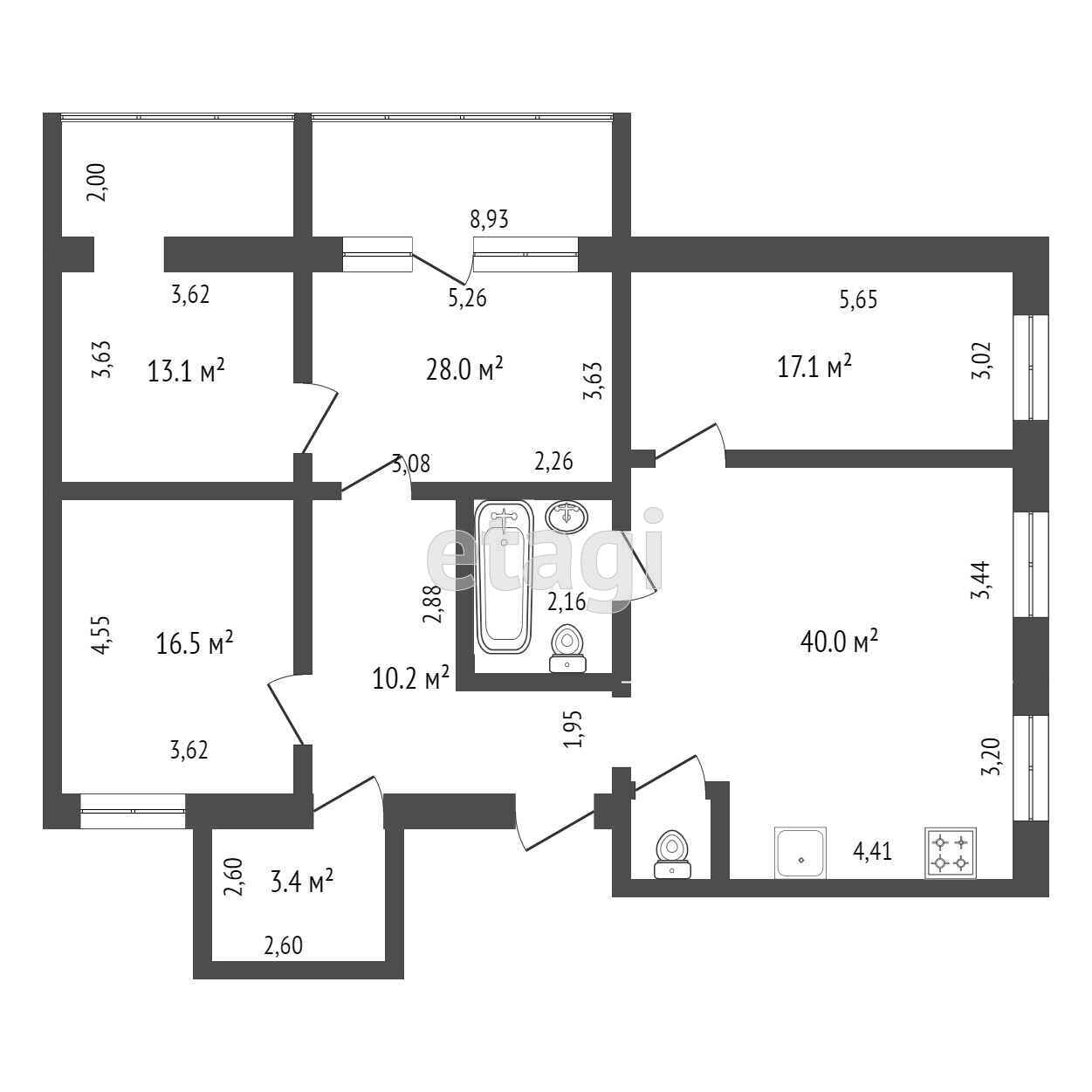 Площадь кухни 40 м2