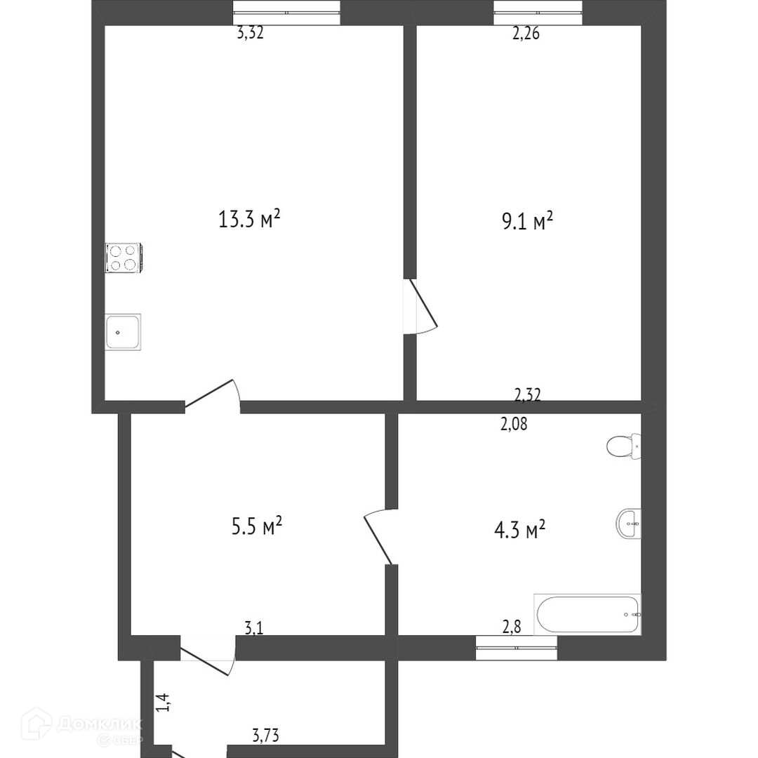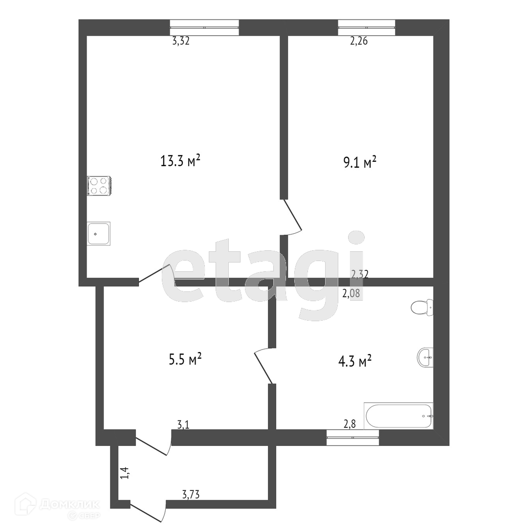 Общая площадь 34 м2