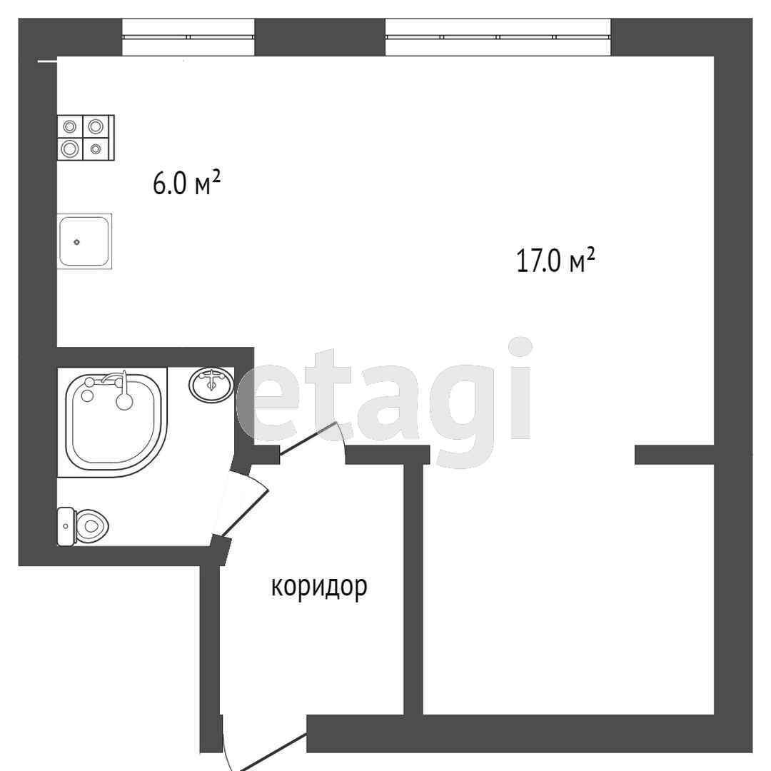 Общая площадь 28,4 кв.м., жилая 17 кв.м., кухня 6 кв.м.