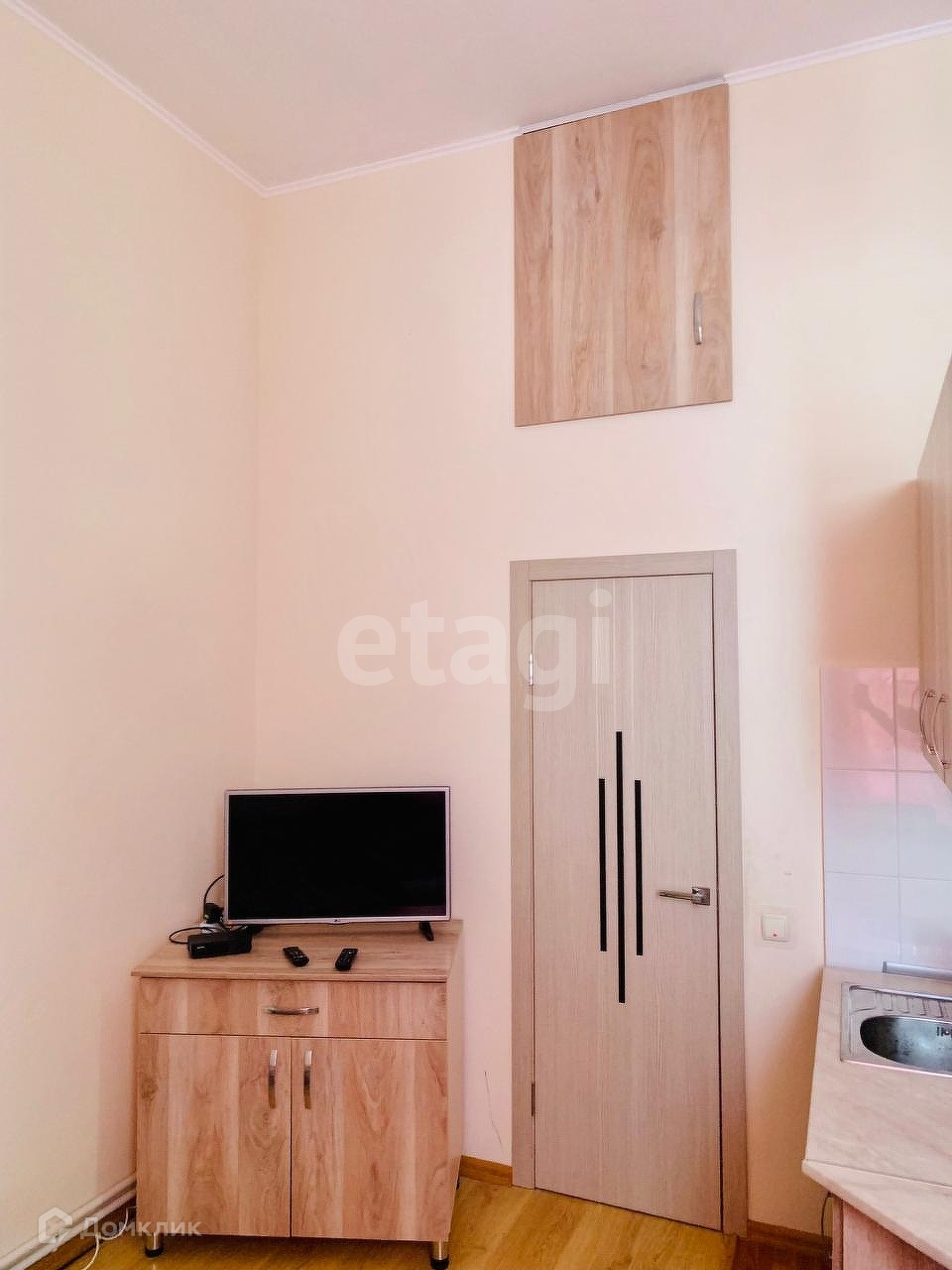 Общая площадь 24 кв.м., планировка - студия, с высокими потолками.