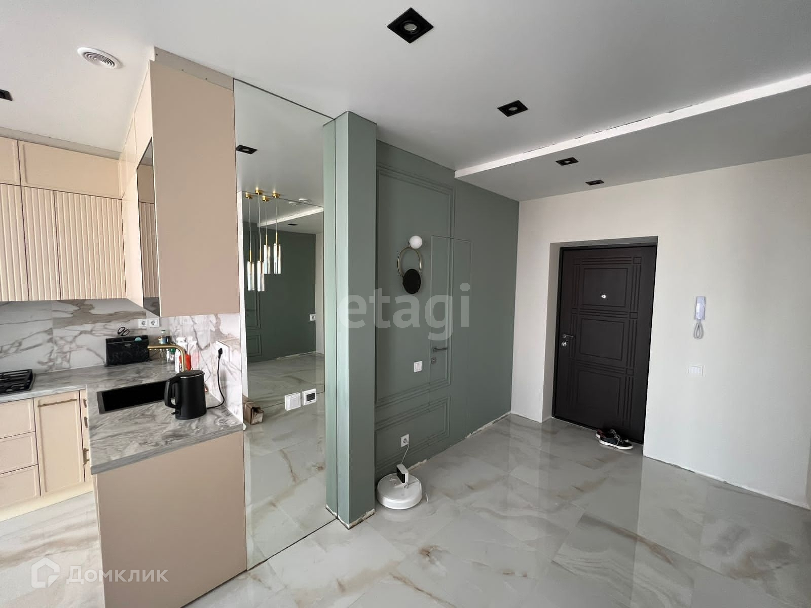 В квартире выполнен ремонт из премиальных материалов, дверь скрытого монтаж,