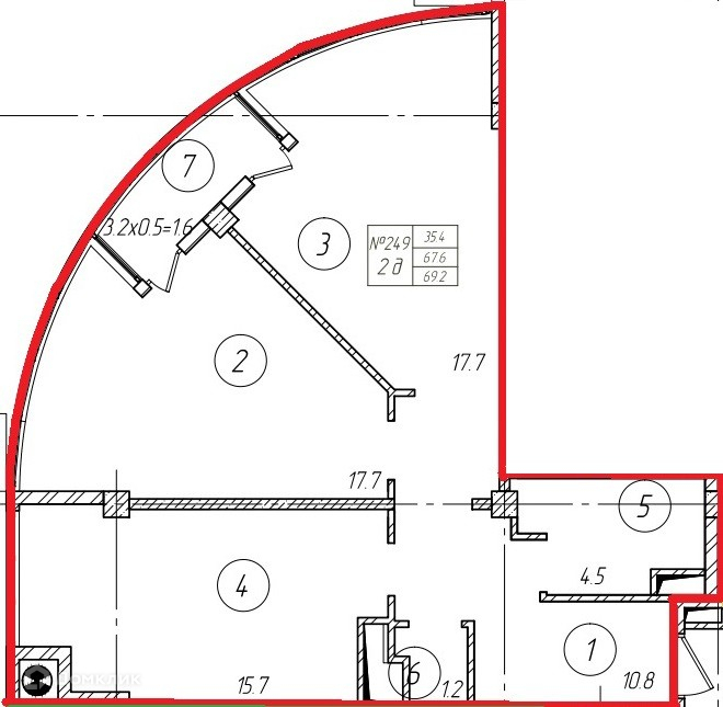 Жилая площадь 35.4 м2