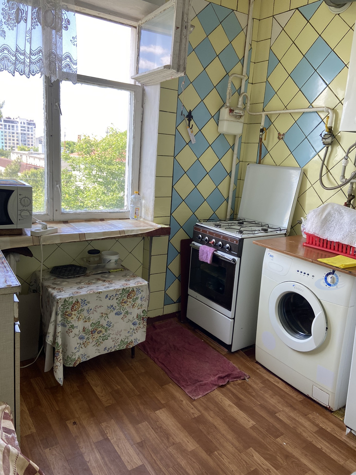 В хорошем зелёном районе с развитой инфраструктурой 3-я квартира в блочном доме. Прихожая 5 м, удобная, квадратная, раздельный с/у, балкон из зала… в самом обычном состоянии, удобна для воплощения ваших дизайнерских идей или  возможна как инвестиция для дальнейшей сдачи в аренду… квартира легко перепланировать в двухкомнатную с большой кухней- столовой!!! Тёплая, светлая, ждёт своего хозяина.