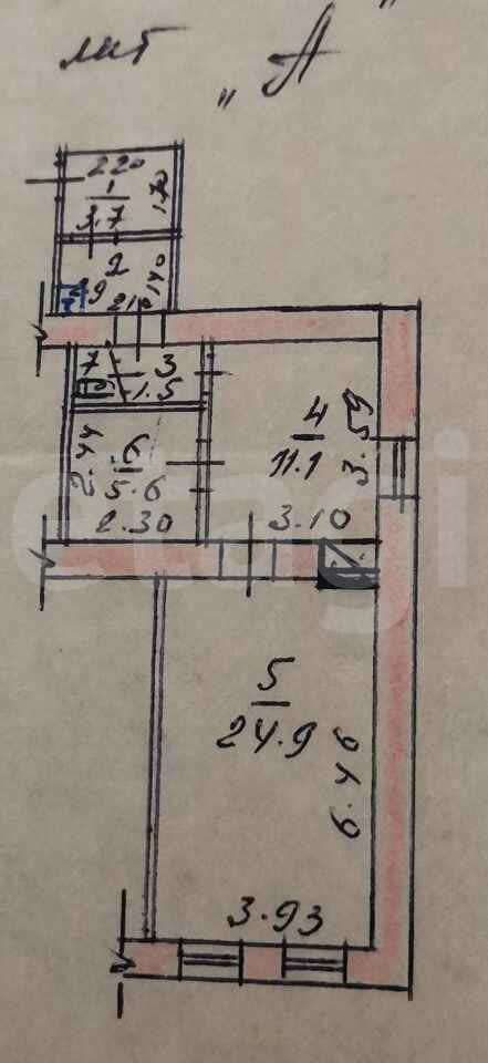 Жилая площадь 24.9 м2