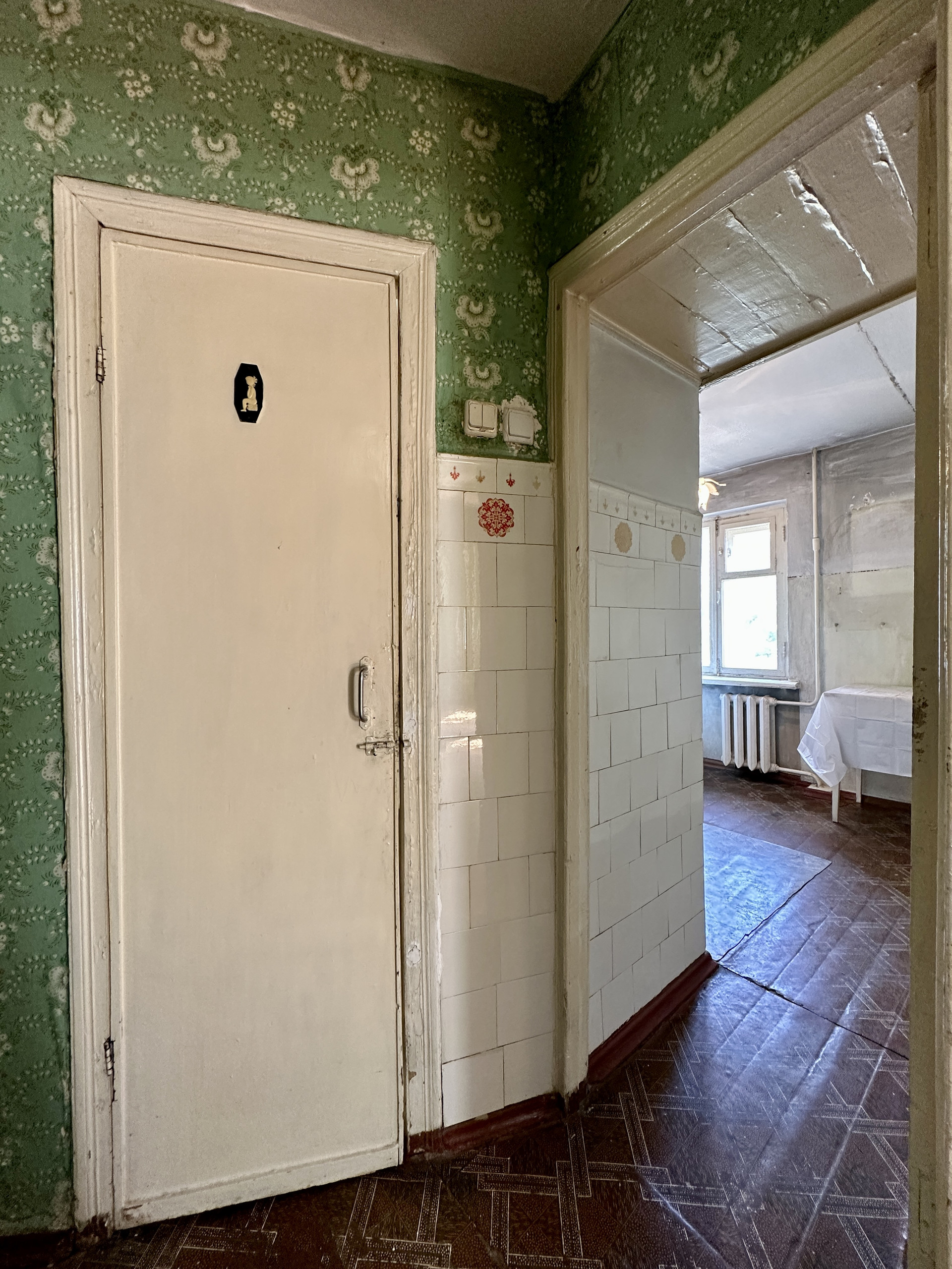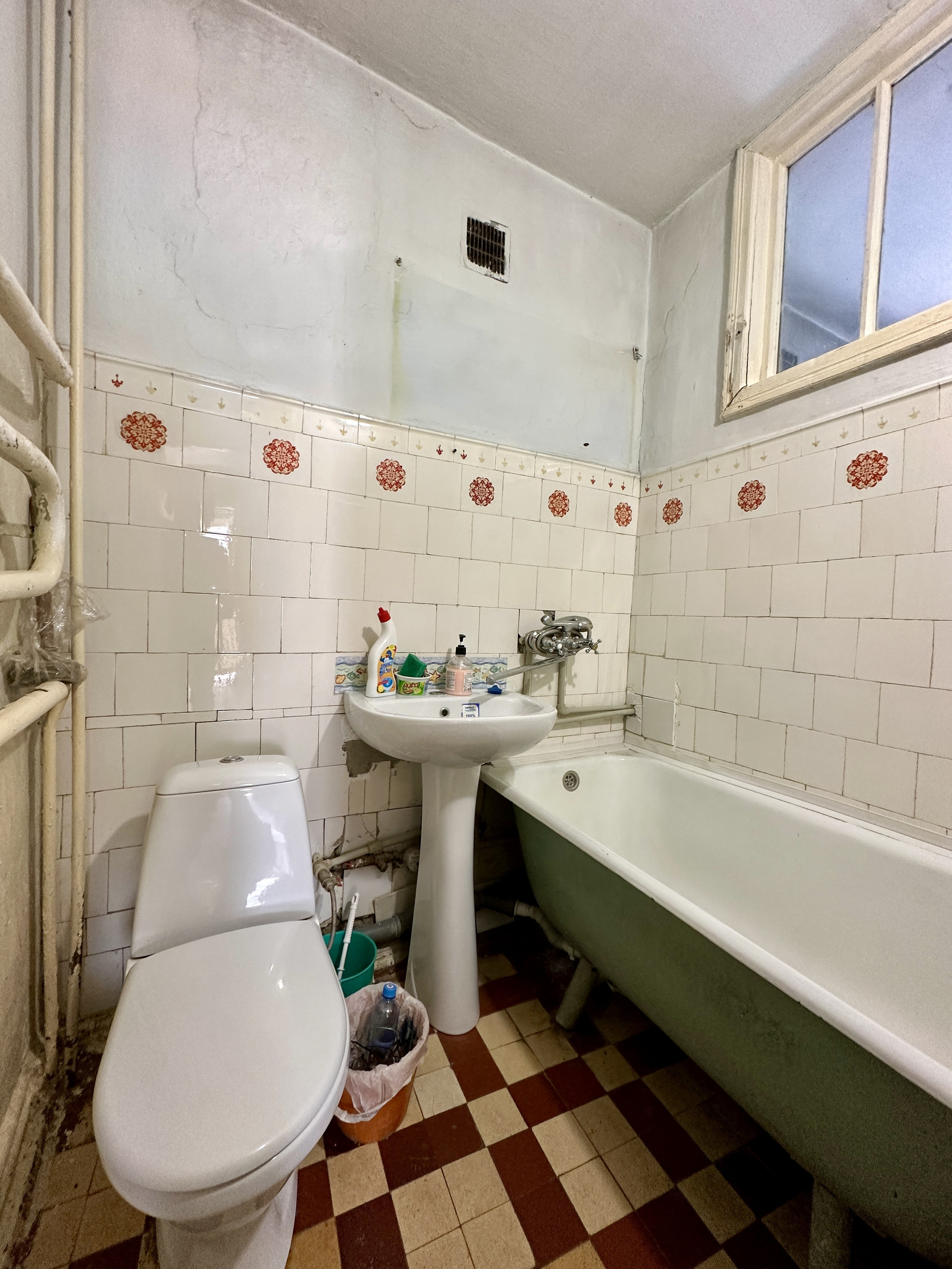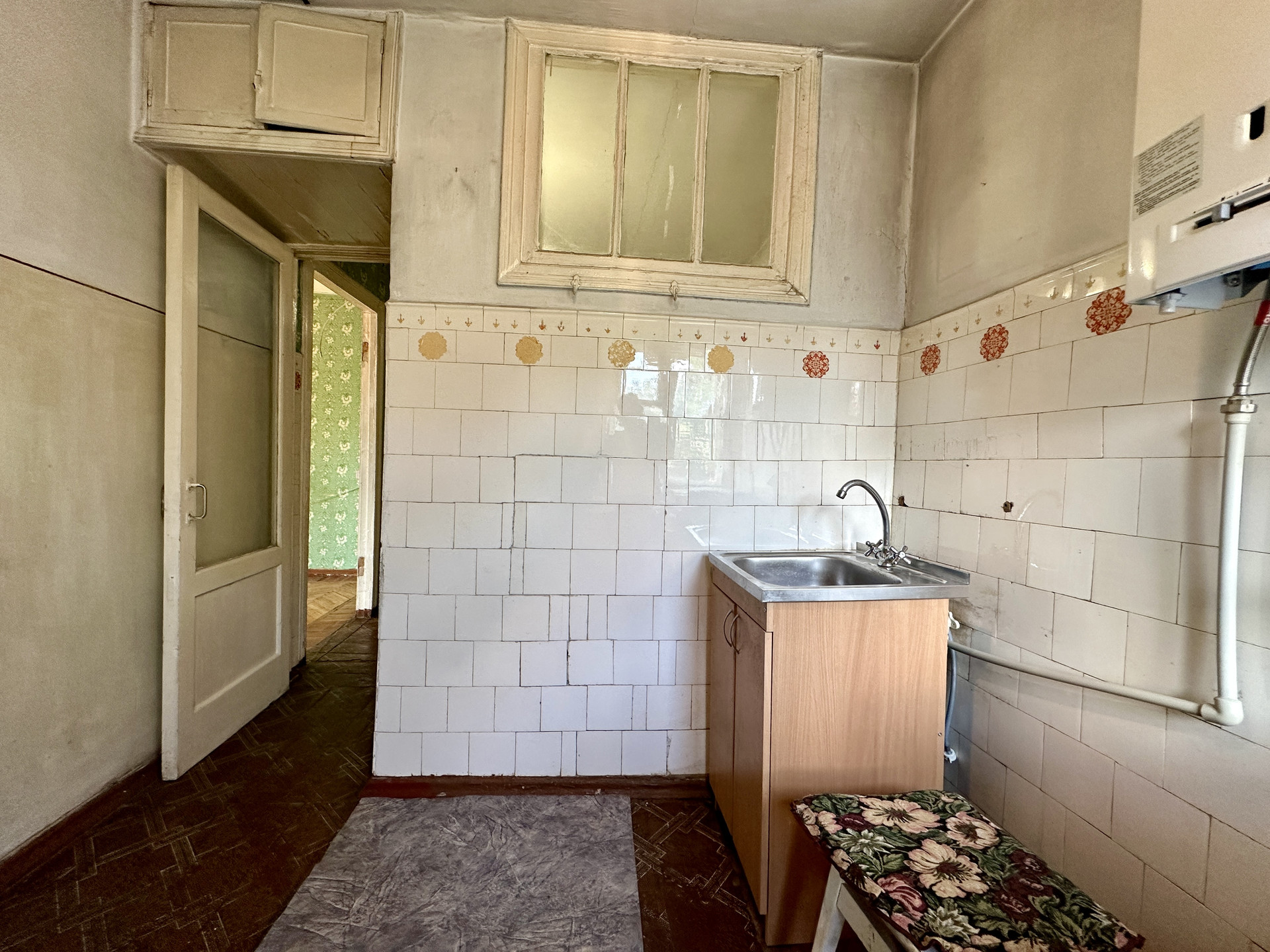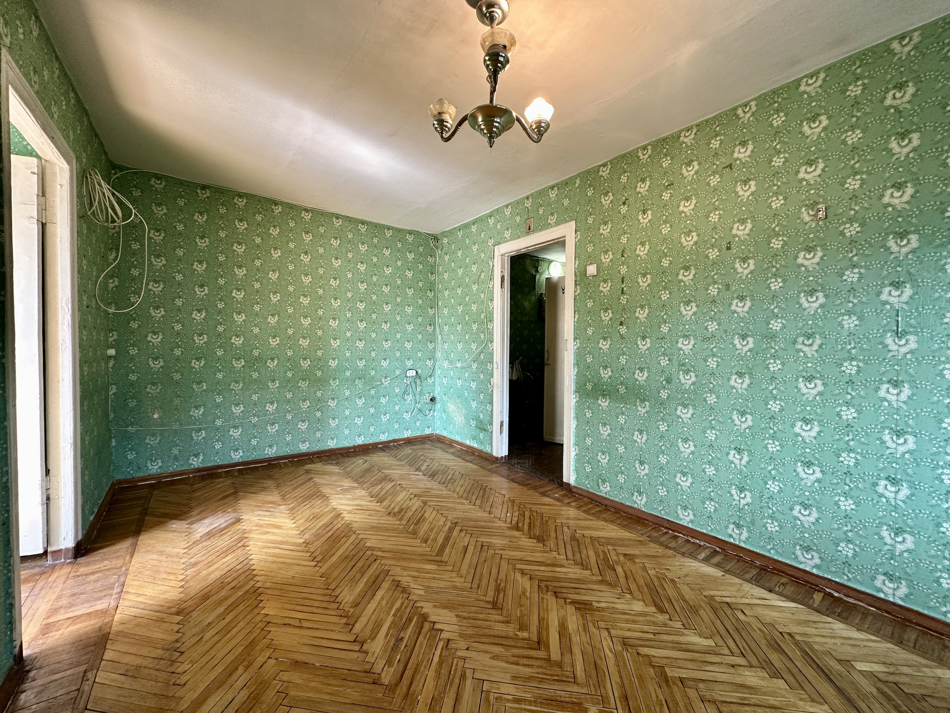 Квартира с советским ремонтом, в зале установлен кондиционер, в комнатах уложен дубовый паркет,  сан. узел в советском кафеле, в кухне установлена современная газовая колонка Bosh, на балконе установлены металлопластиковые окна, вся инженерика работает, если быть не привередливым то можно зайти и жить.