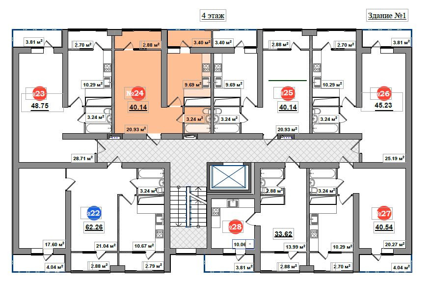 Общая площадь 40.54 м2