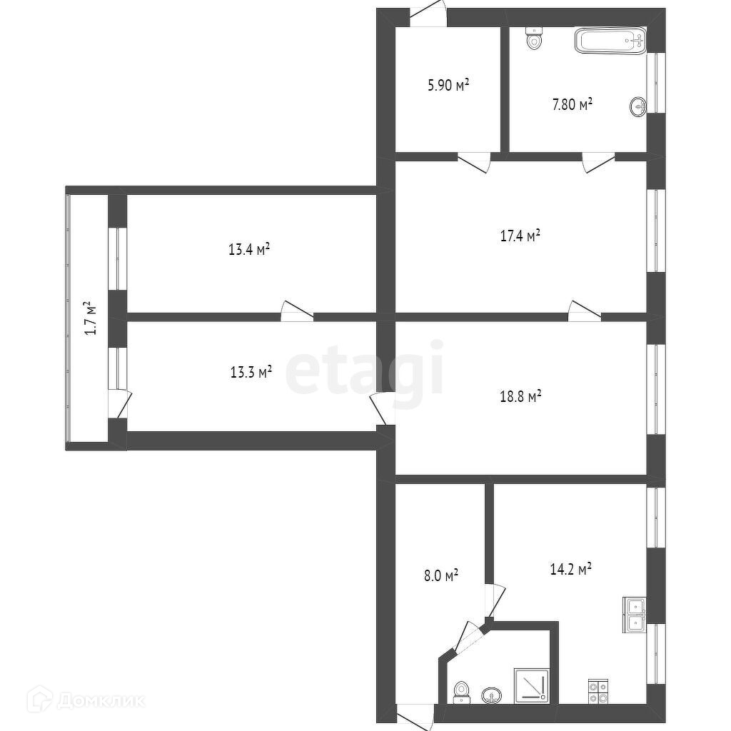 Предлагаем к покупке эксклюзивную квартиру индивидуальной планировки! Общая площадь 101 кв.м., жилая 70.7 кв.м., просторная кухня 14 кв.м.