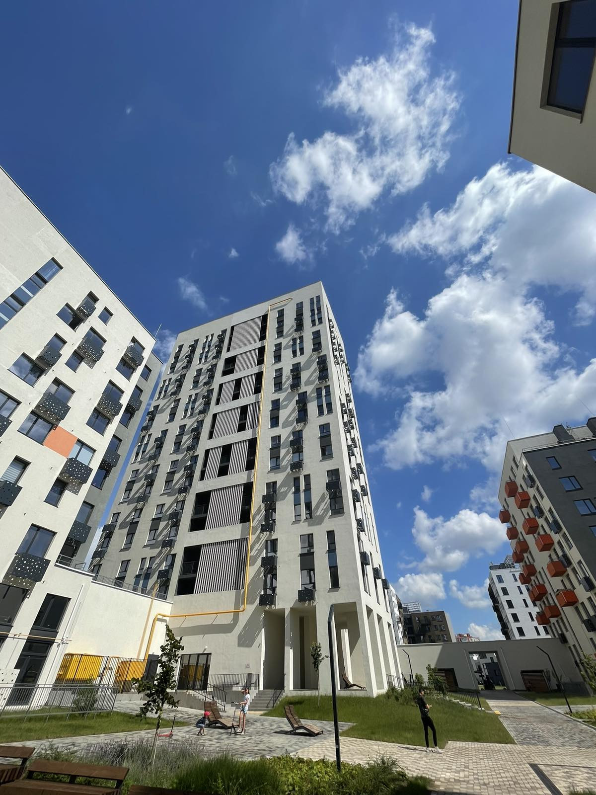 Комплекс "Черника" - это двор без машин ,с зонами отдыха , детскими игровыми площадками , газонами и деревьями .
