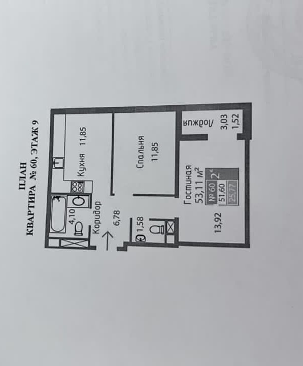 Общая площадь 53.11 м2