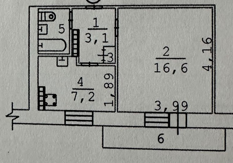 Балкон, лоджия 1 балкон