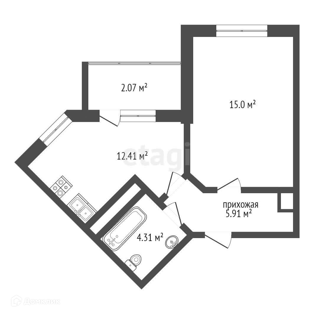 Общая площадь 39,7 кв.м, высокие потолки 2,85 м, просторная кухня 12,5 кв.м, гардеробная, санузел совмещен.