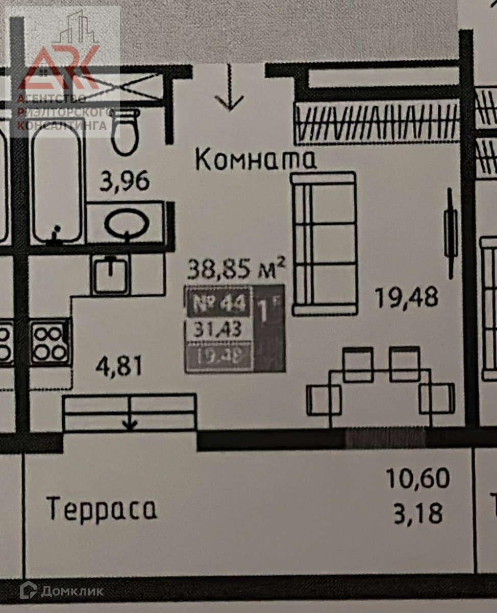 Жилая площадь 19.48 м2