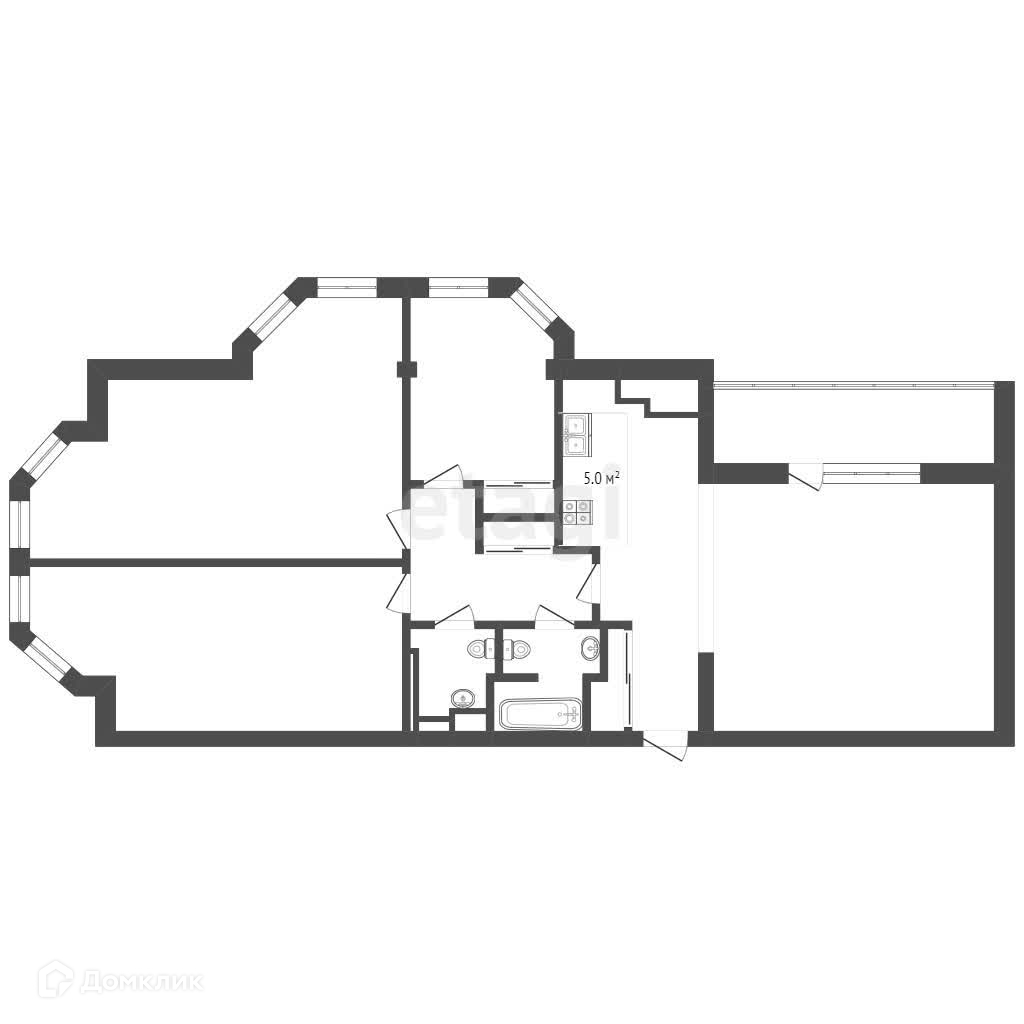 В квартире: 3 спальни, 2 санузла, гардеробная, кухня-гостиная, лоджия.