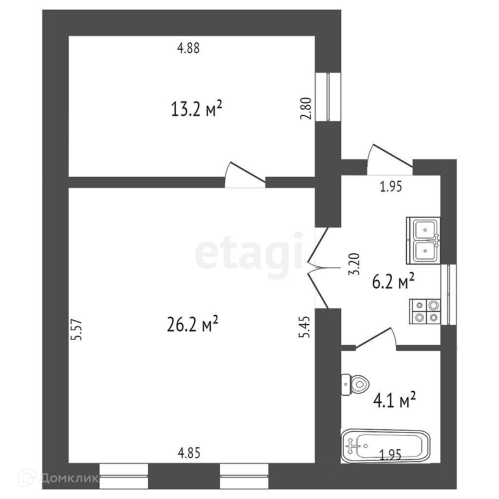 Просторные светлые комнаты 26,2 м.кв. и 13,2 м.кв. совмещенный санузел.