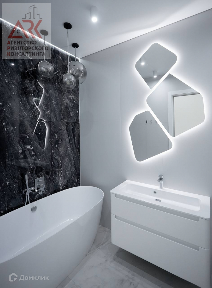 На 135 кв метрах расположены три спальни, две гардеробные, есть и ванна , и душ.