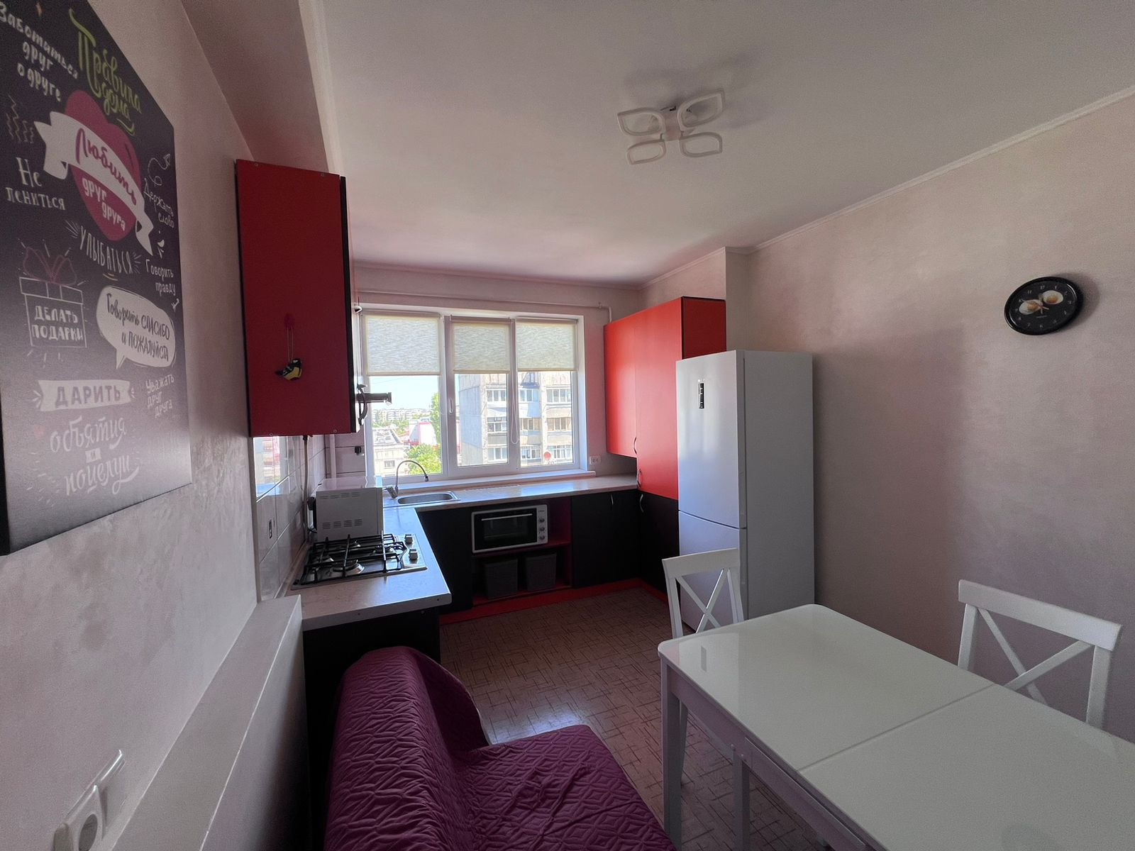 Высокий потолок ,окна качественный пластик.