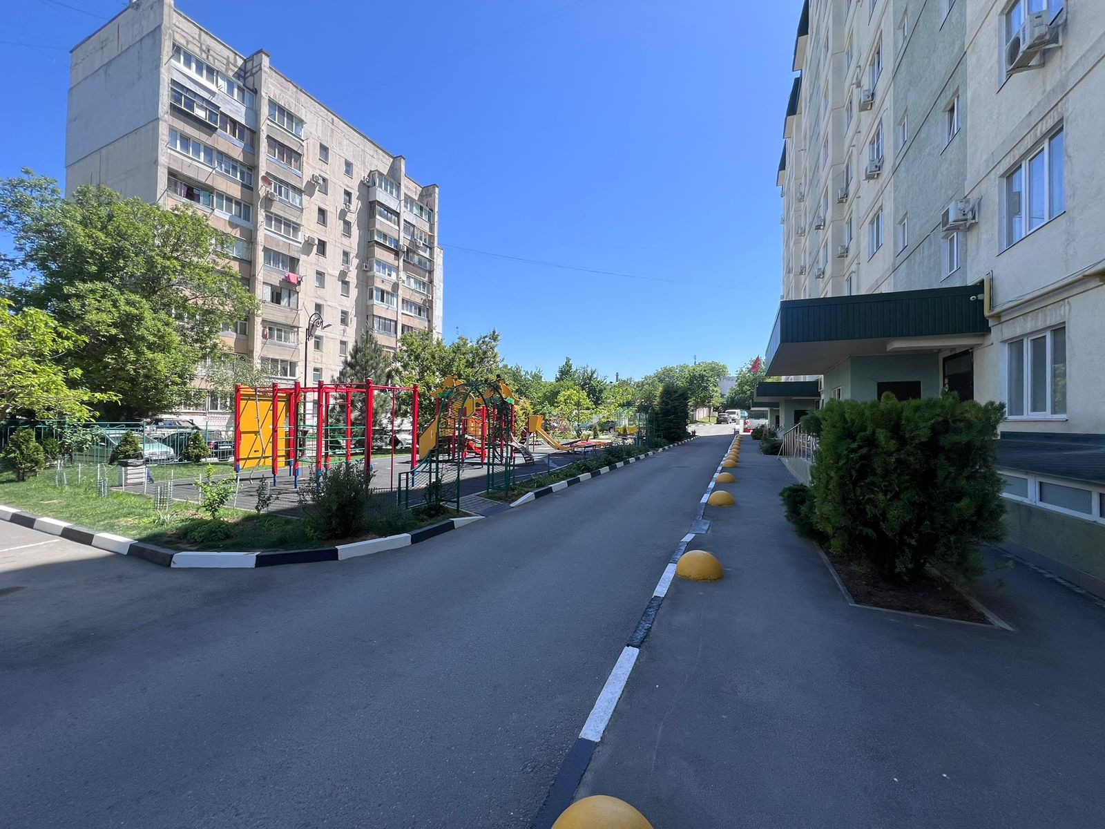 Закрытая территория с автоматическими воротами, детская площадка, парковка.